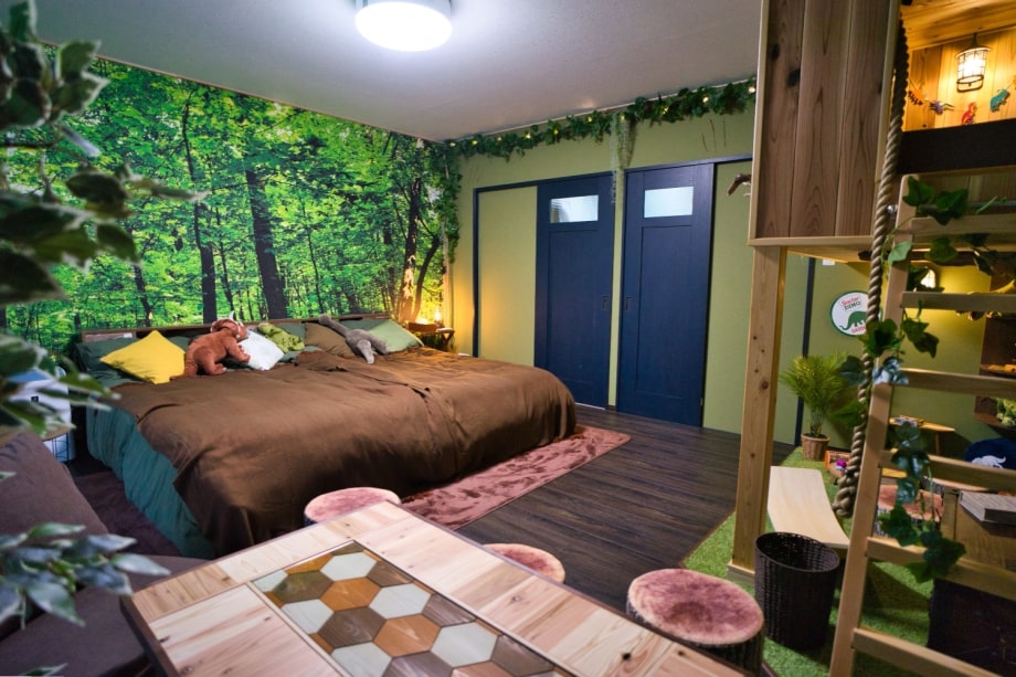 お部屋の中に木でできた秘密基地があって、ハシゴを登って楽しめたりと、恐竜好きのお子様には大変おすすめです🎵