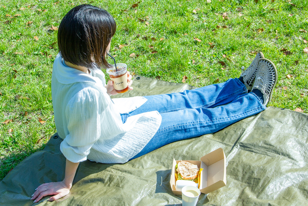 レジャーシートの貸出がありますので、公園でピクニックスタイルでお召し上がりいただいたり、お部屋にお持ち帰りいただいたり、サロンでのイートインも可能です!