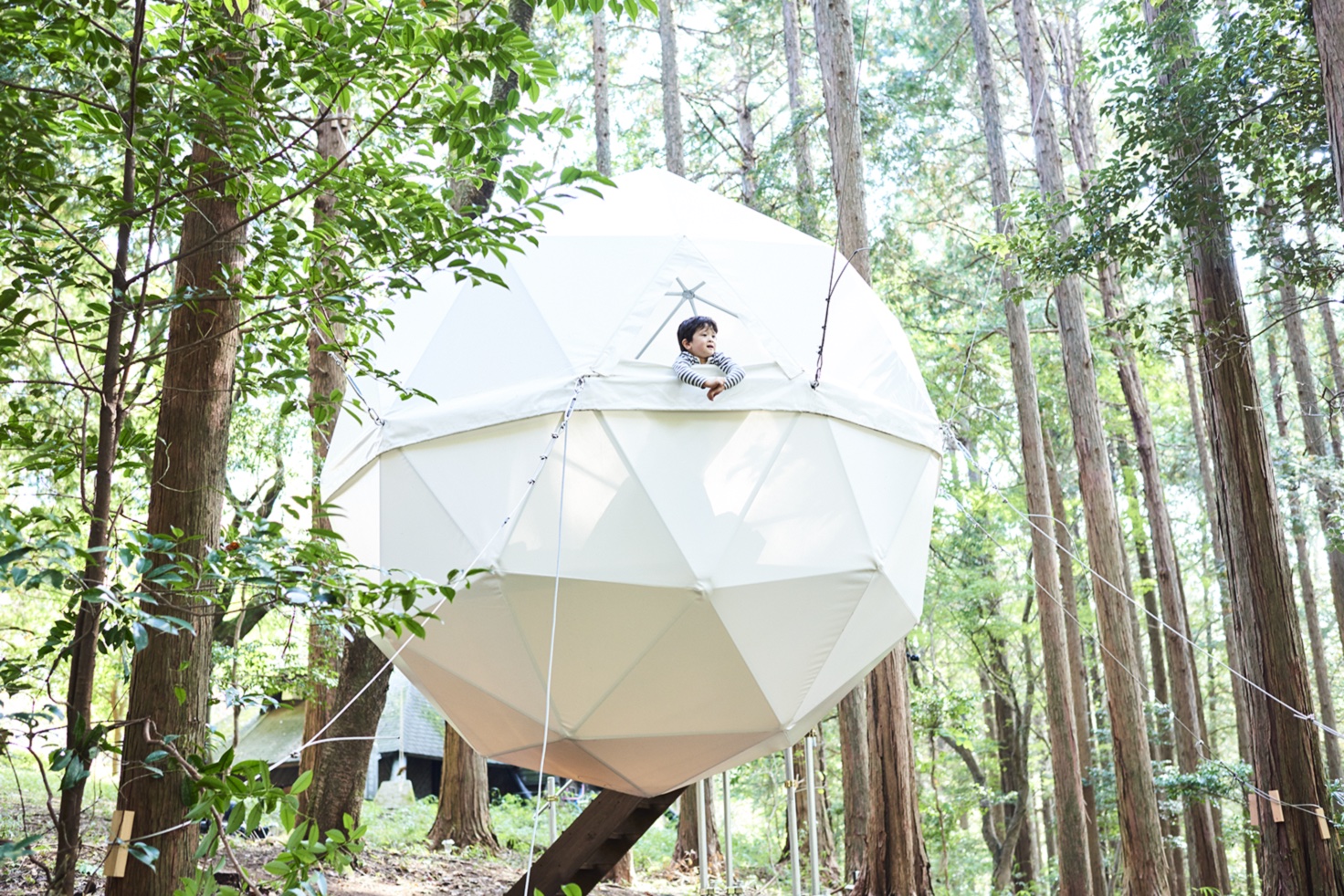 球体テントエリアは、宙に浮かぶ球体テントや、ウッドデッキに設置された球体テントなど、3種類からなるドームテントがあります!