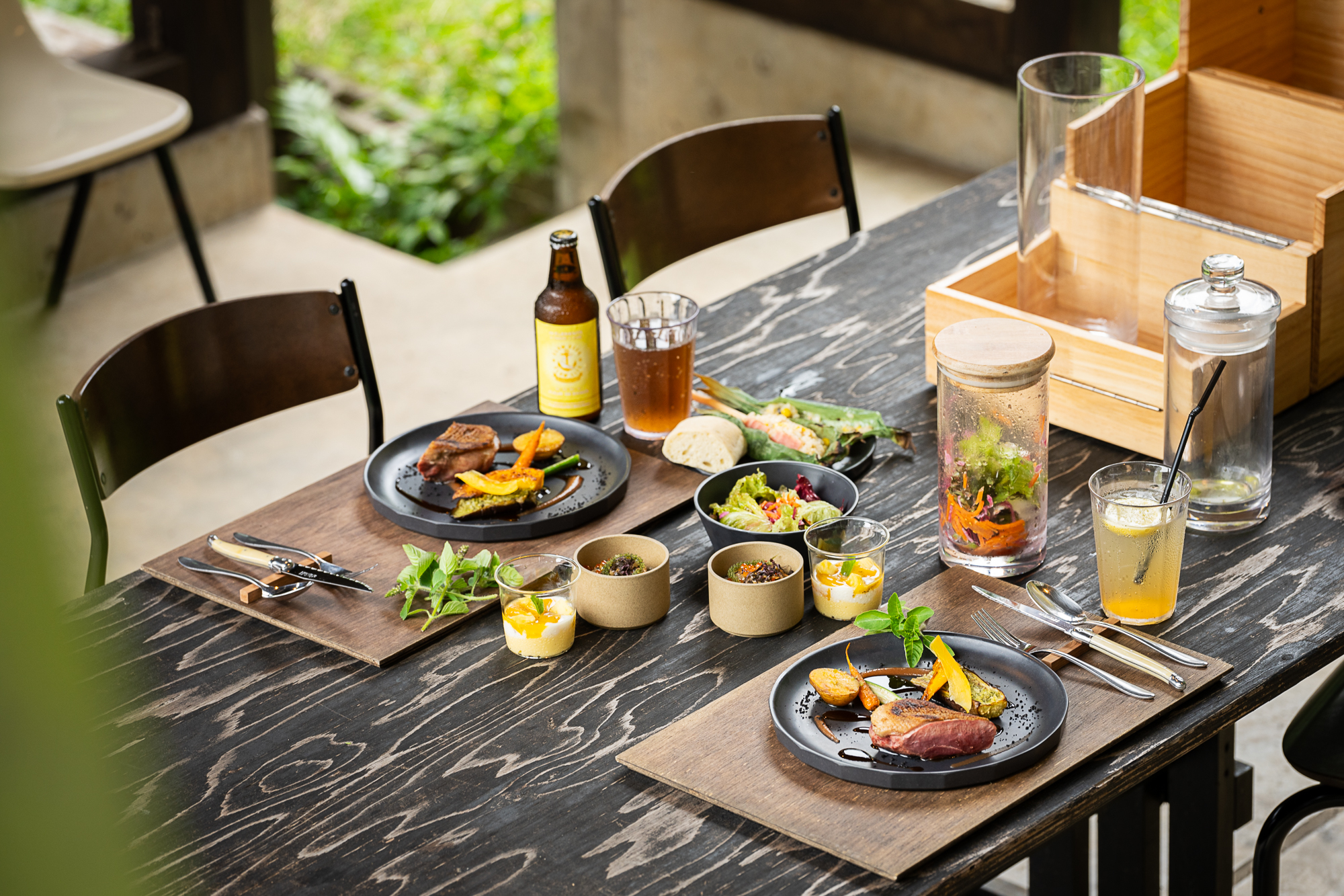アウトドアディナーコースでは、一般的なBBQよりも、くつろぎながらハイクオリティなお料理をお楽しみただけます!
