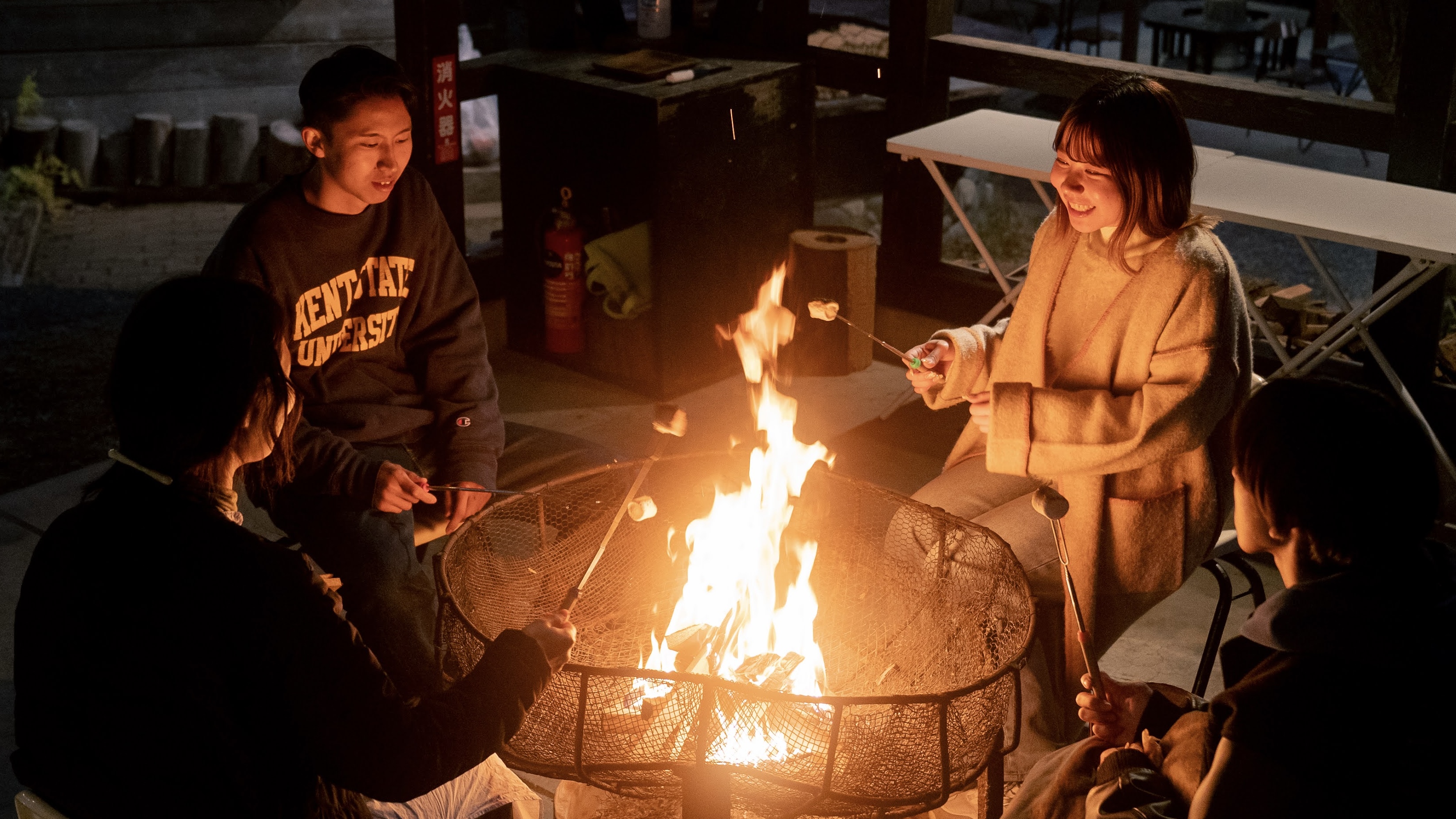 焼きマシュマロを無料でお楽しみいただけ、道具も施設でご用意しています!
