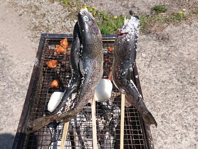 また、自分で釣ったヤマメは塩焼きにして食べることができます。