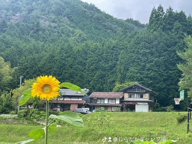 「しらたかキャンプ場」は、緑豊かな大自然、田園風景を眺める門野地域の一番奥、清流矢作川の源流域にあります。