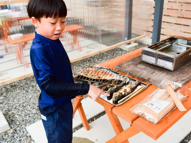 また、魚釣り体験の後は炭火焼で美味しい釣りたての魚を頂くことができたり、プランで用意された食材と共にBBQを楽しむことができ、自分で釣った魚をその場で食べるという体験は最高の思い出になること間違いなし!