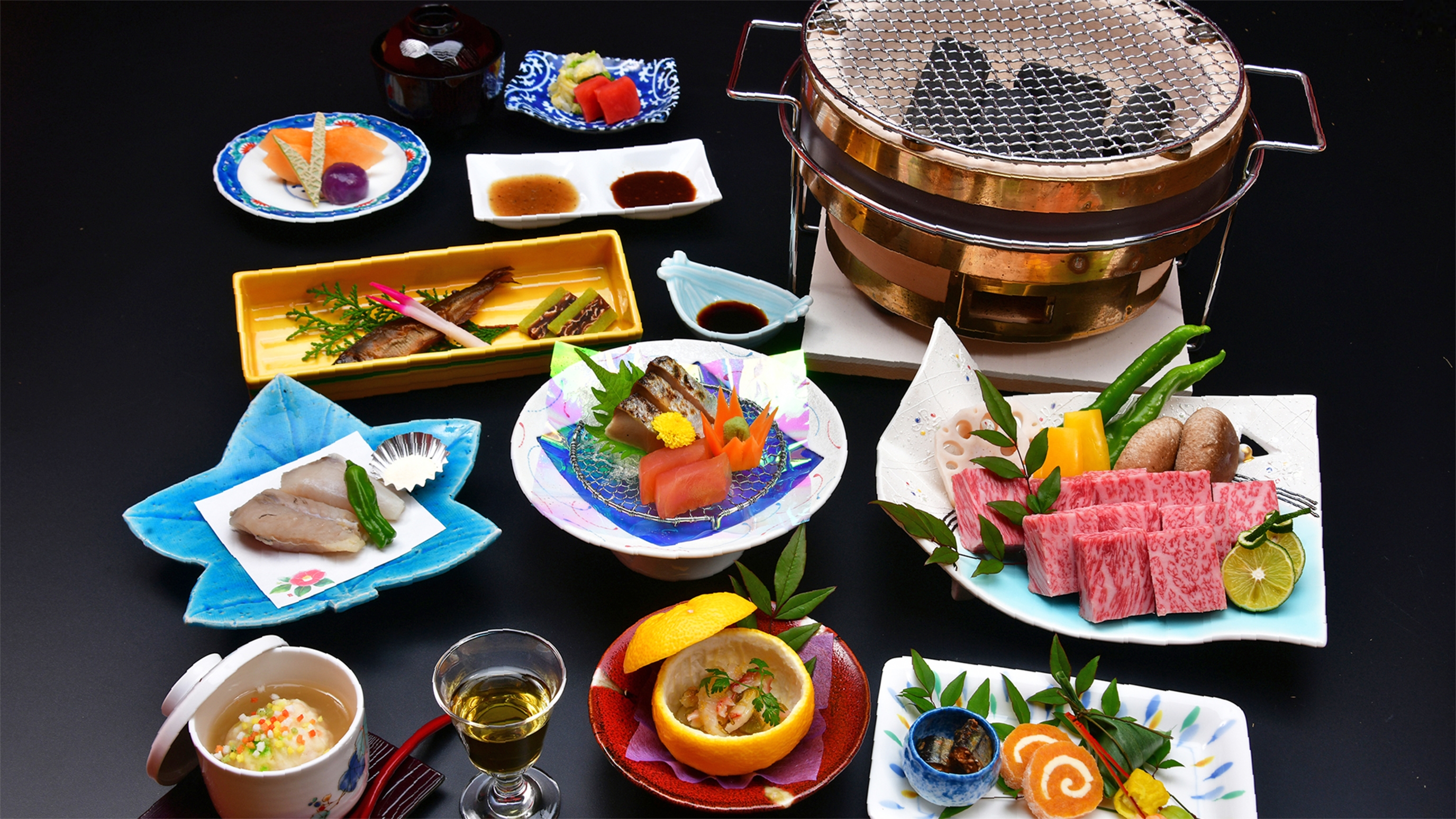 お食事は七輪で炙るA5等級飛騨牛の炭火焼きプランや、夕朝食どちらも愛犬と過ごせるお部屋食プランもご用意!