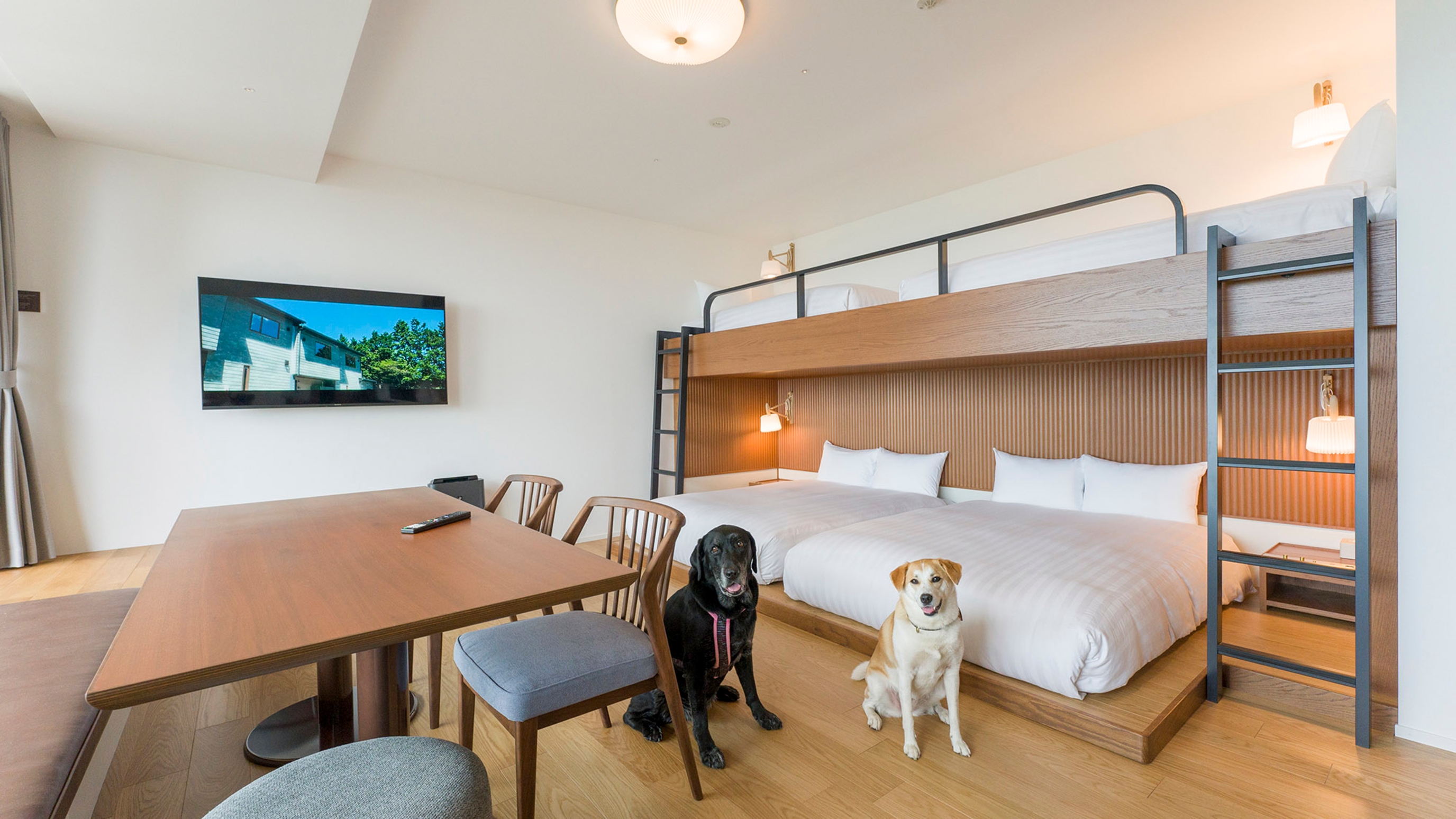 ペットフレンドリールームでは小・中・大型犬合計2頭まで一緒にご宿泊が可能です!