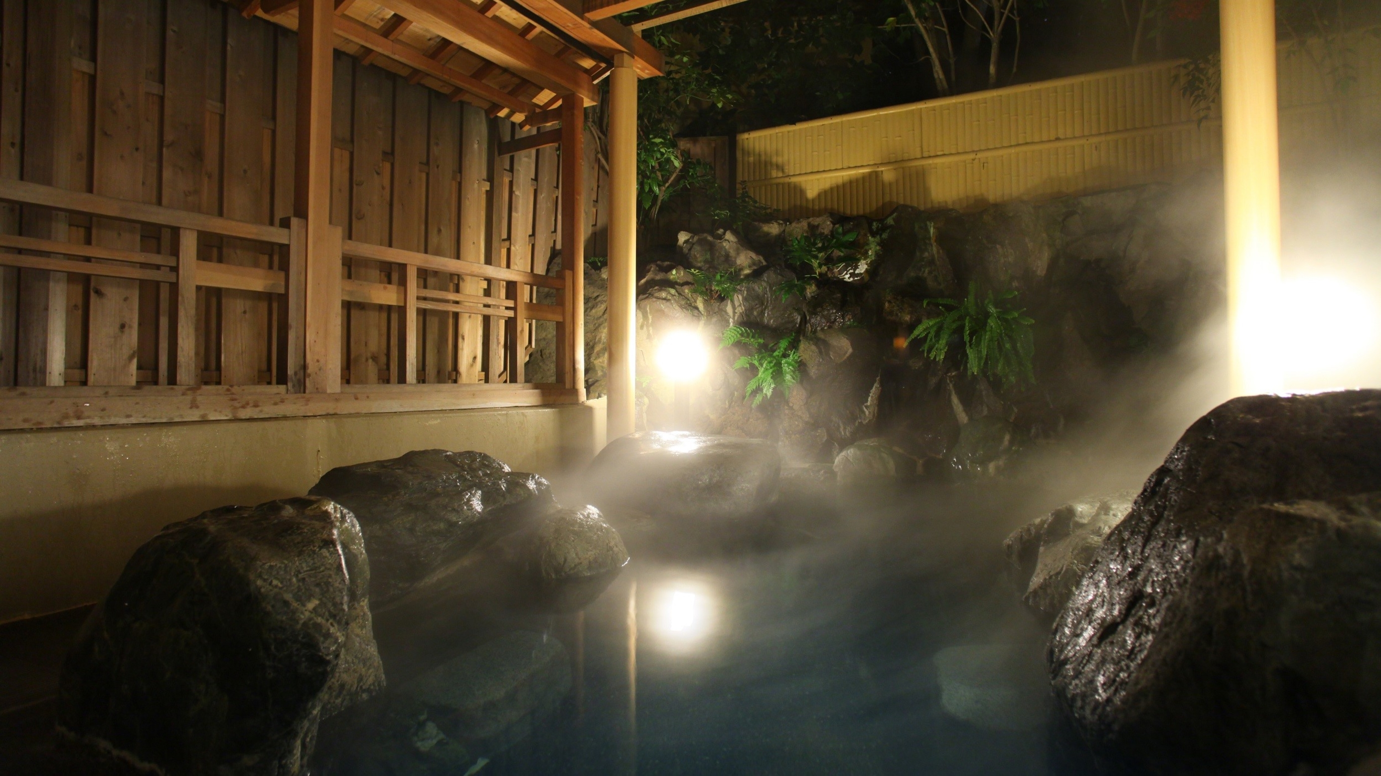 露天風呂「星月の湯」は、下呂ならではの美しい星空を見上げながらゆっくり身体を休めることができる落ち着きの空間。
