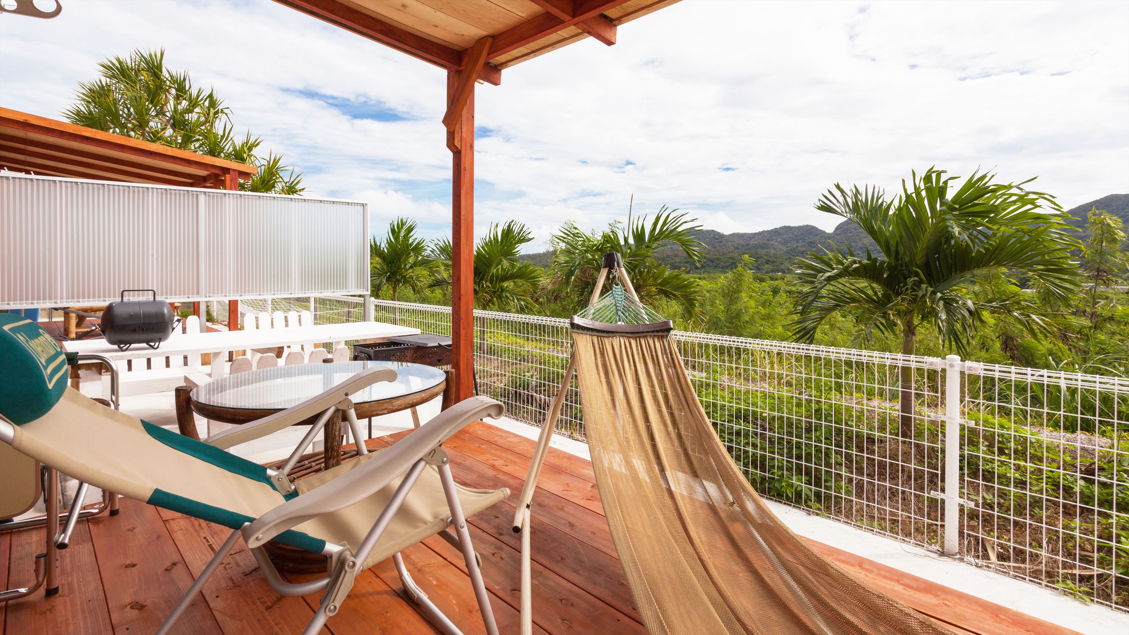 敷地内には屋根付きBBQスペースもあり地元の新鮮食材を使用してバーベキューパーティーを楽しむのもおすすめ。