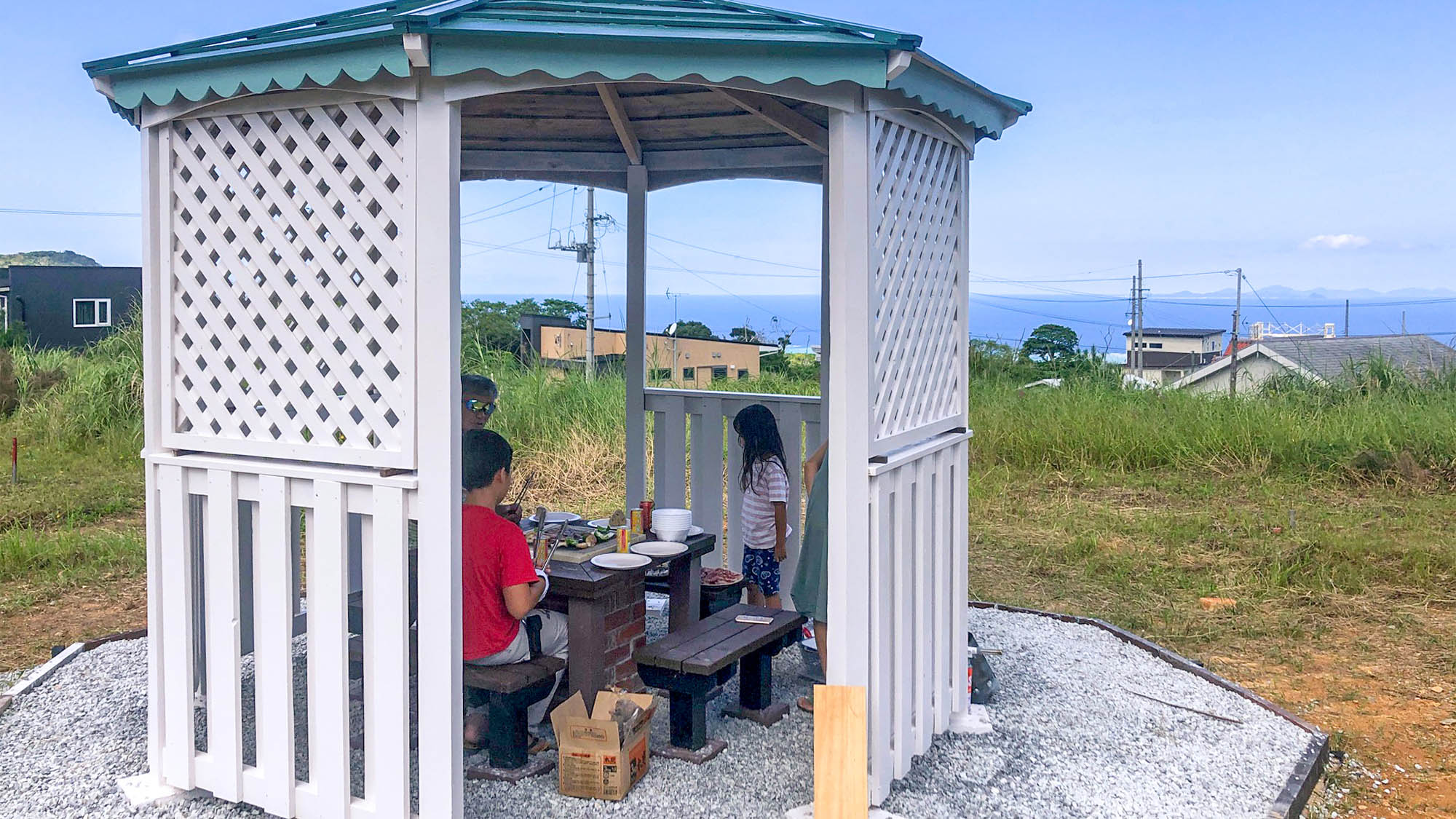 敷地内には屋根付きバーベキュー会場を完備し、手軽にバーベキューを楽しむことも。