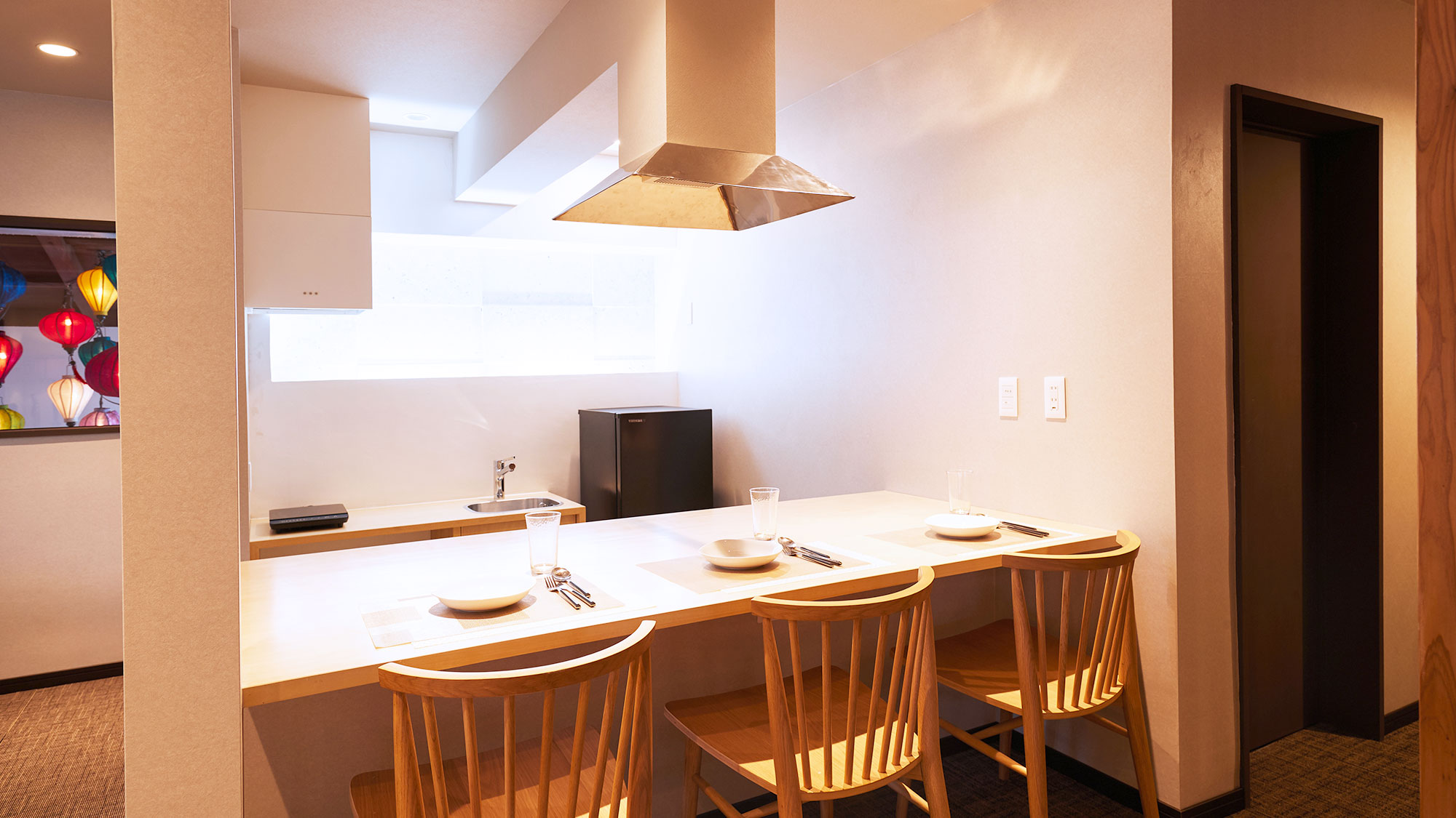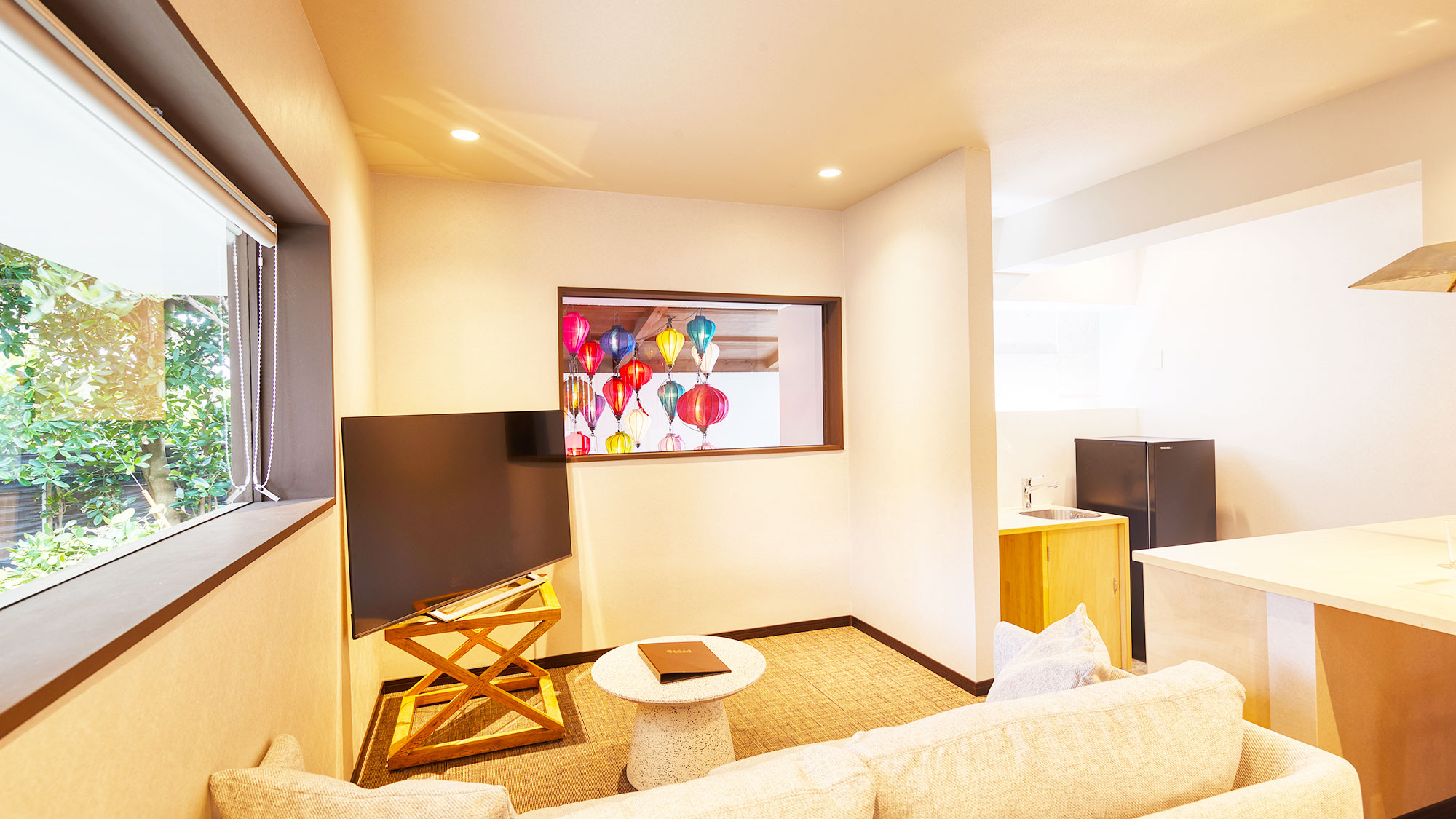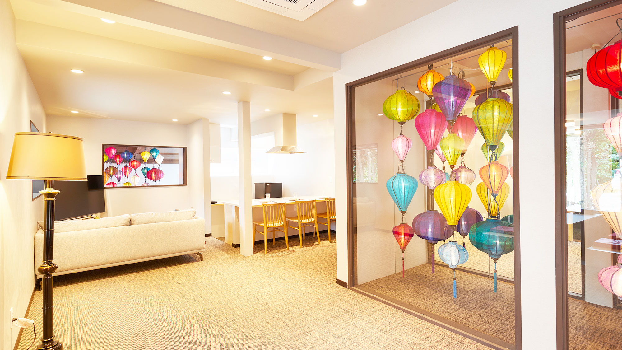 室内は柔らかくカラフルな色づかいのランタンに彩られ、カップルや女子旅での利用にもおすすめです。