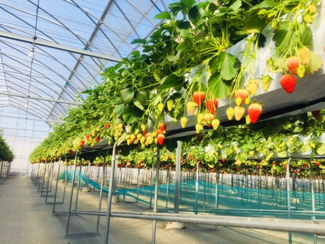 高設栽培、バリアフリー対応で、どなた様も楽しくいちご狩り体験ができます🎵