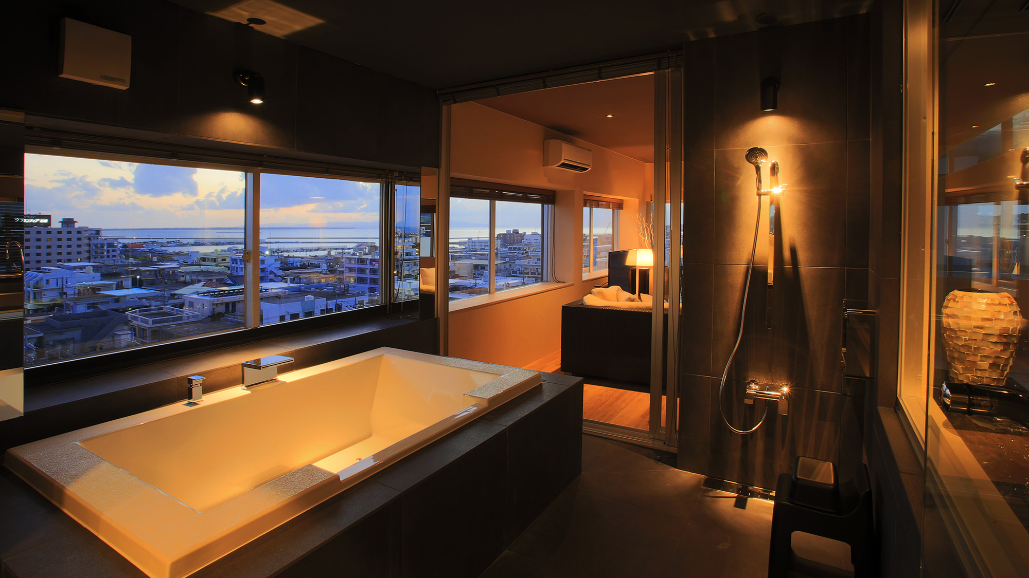 モダンなデザインの客室は、美しい海と夕陽を一望できる贅沢な空間となっています。