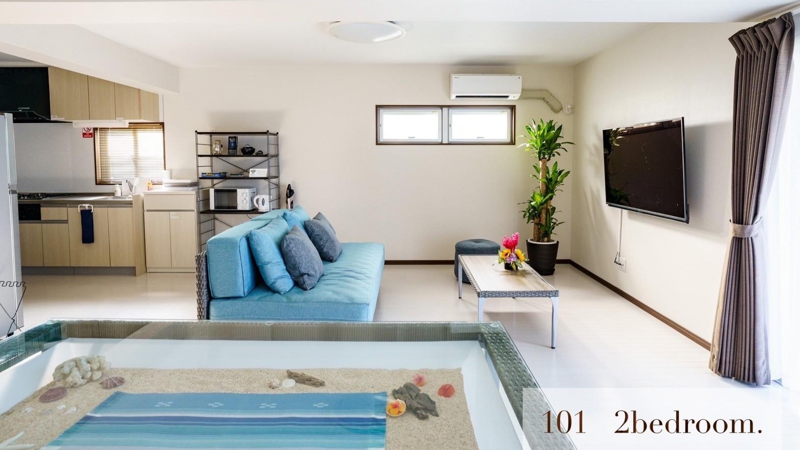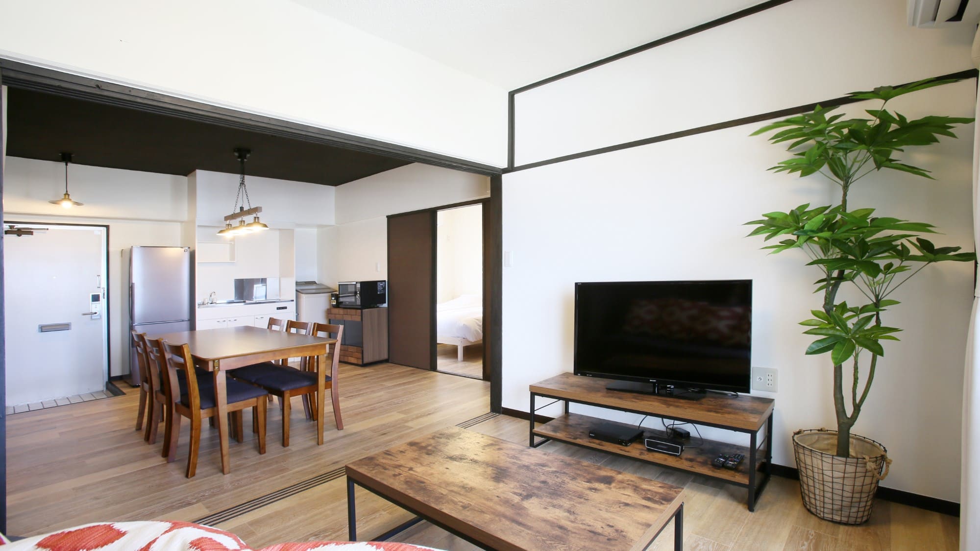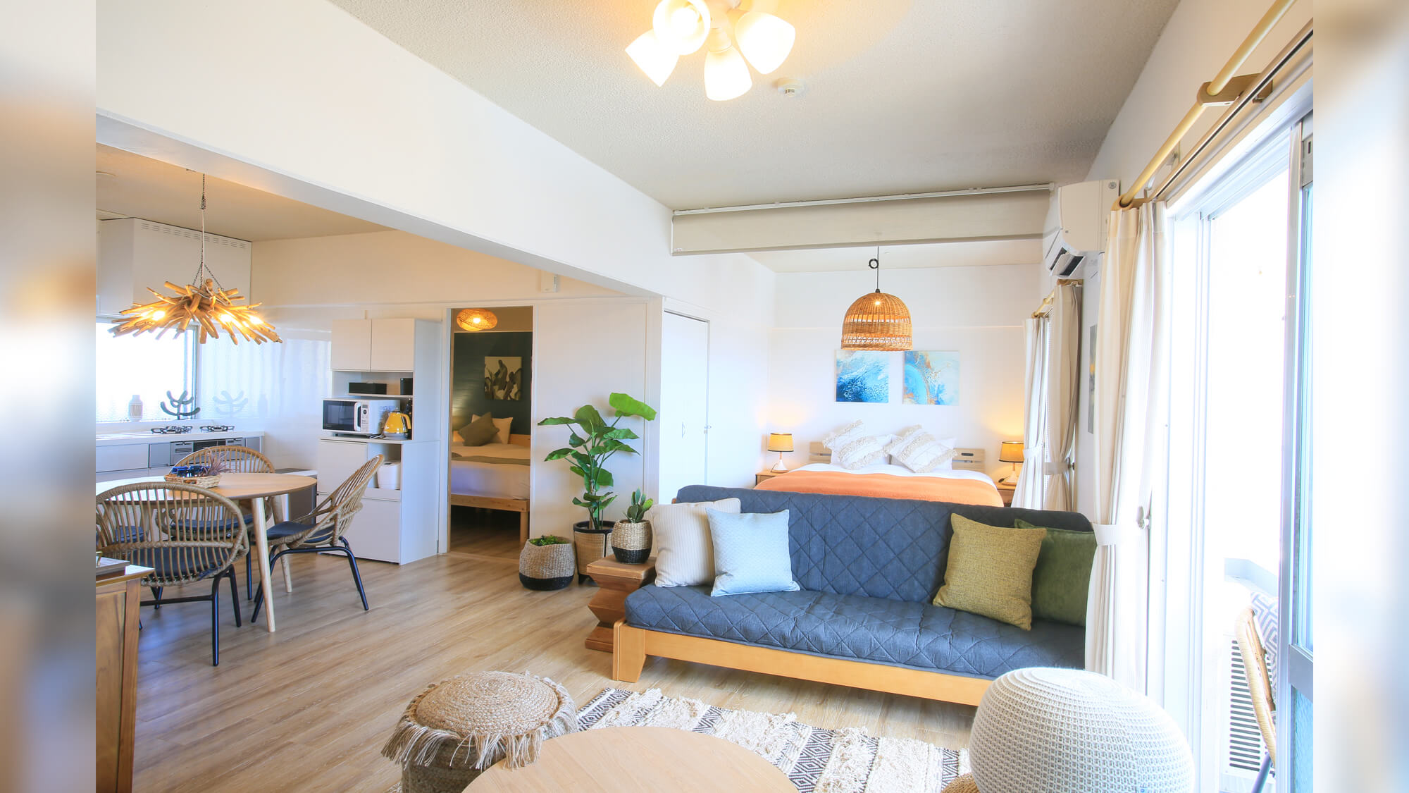 明るくくつろげる空間には、キッチン、洗濯機完備となっており、長期滞在、女子会やグループ旅行での宿泊にもおすすめです。