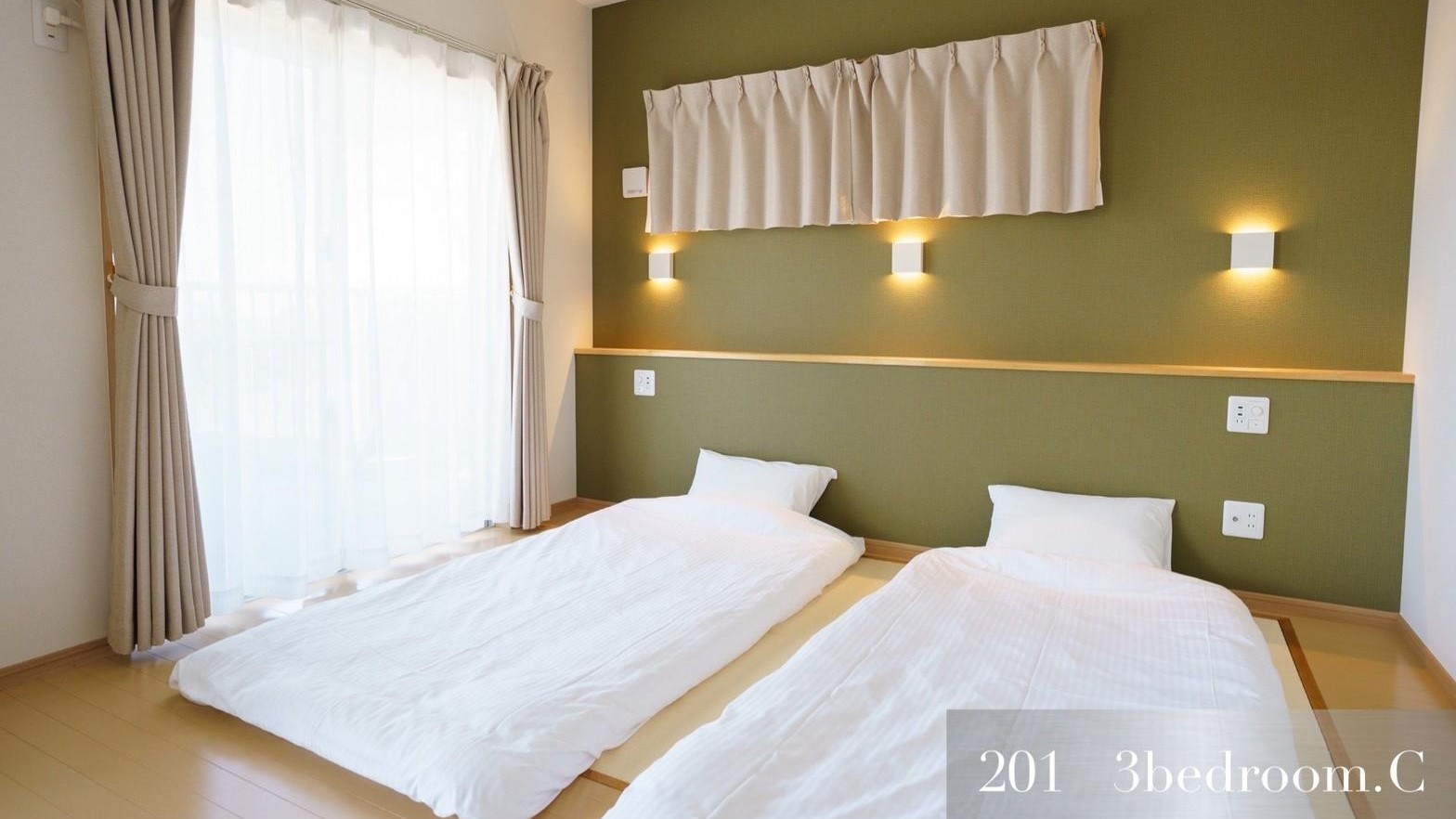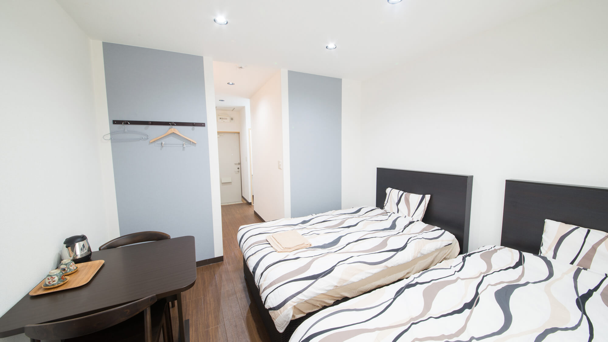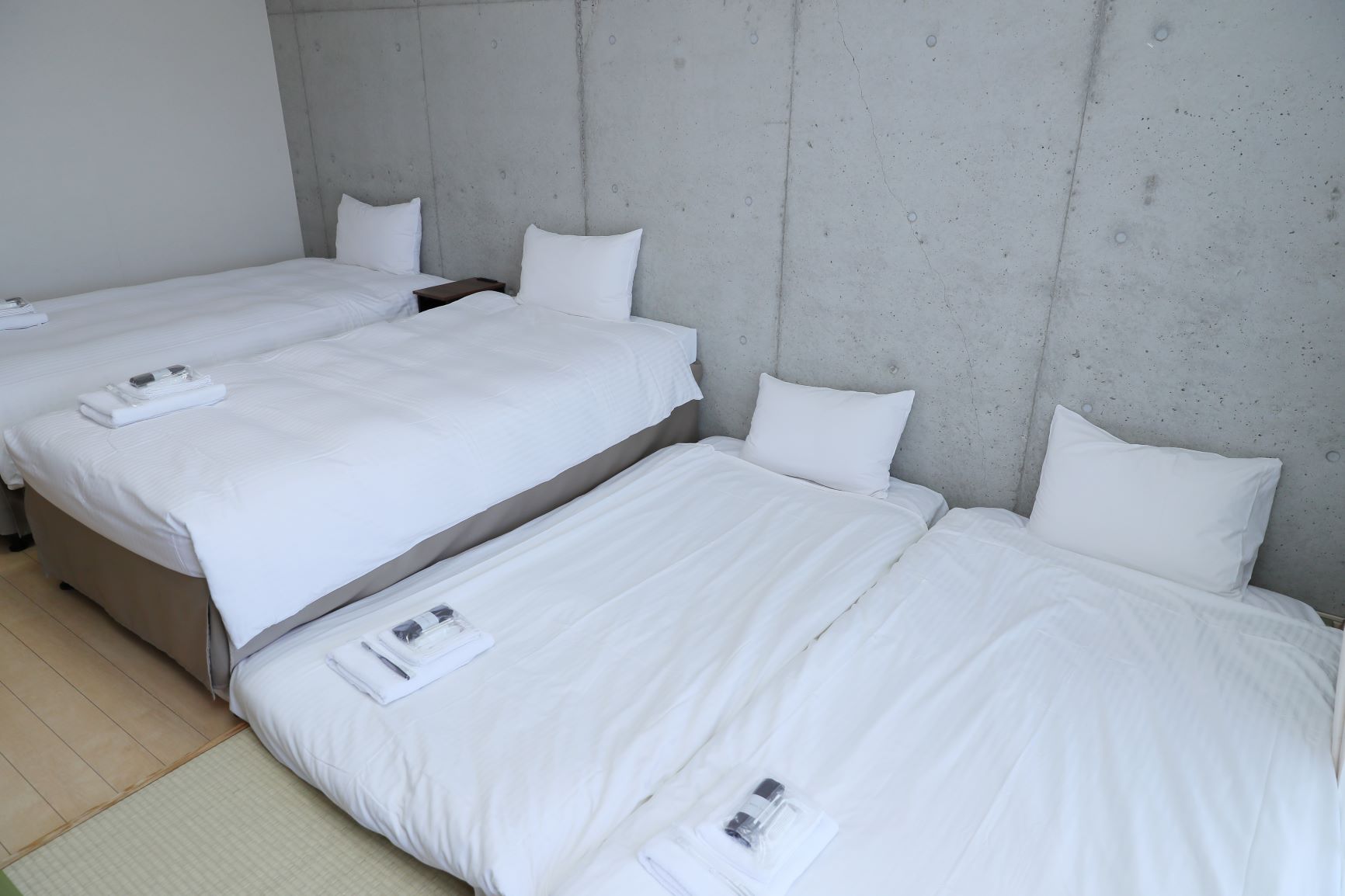 シモンズベッドを使用したツインベッドルームの他、3名様以上でご宿泊の際は、和室のお部屋(布団×4)を利用でき、ご家族での旅行でも利用いただけます。