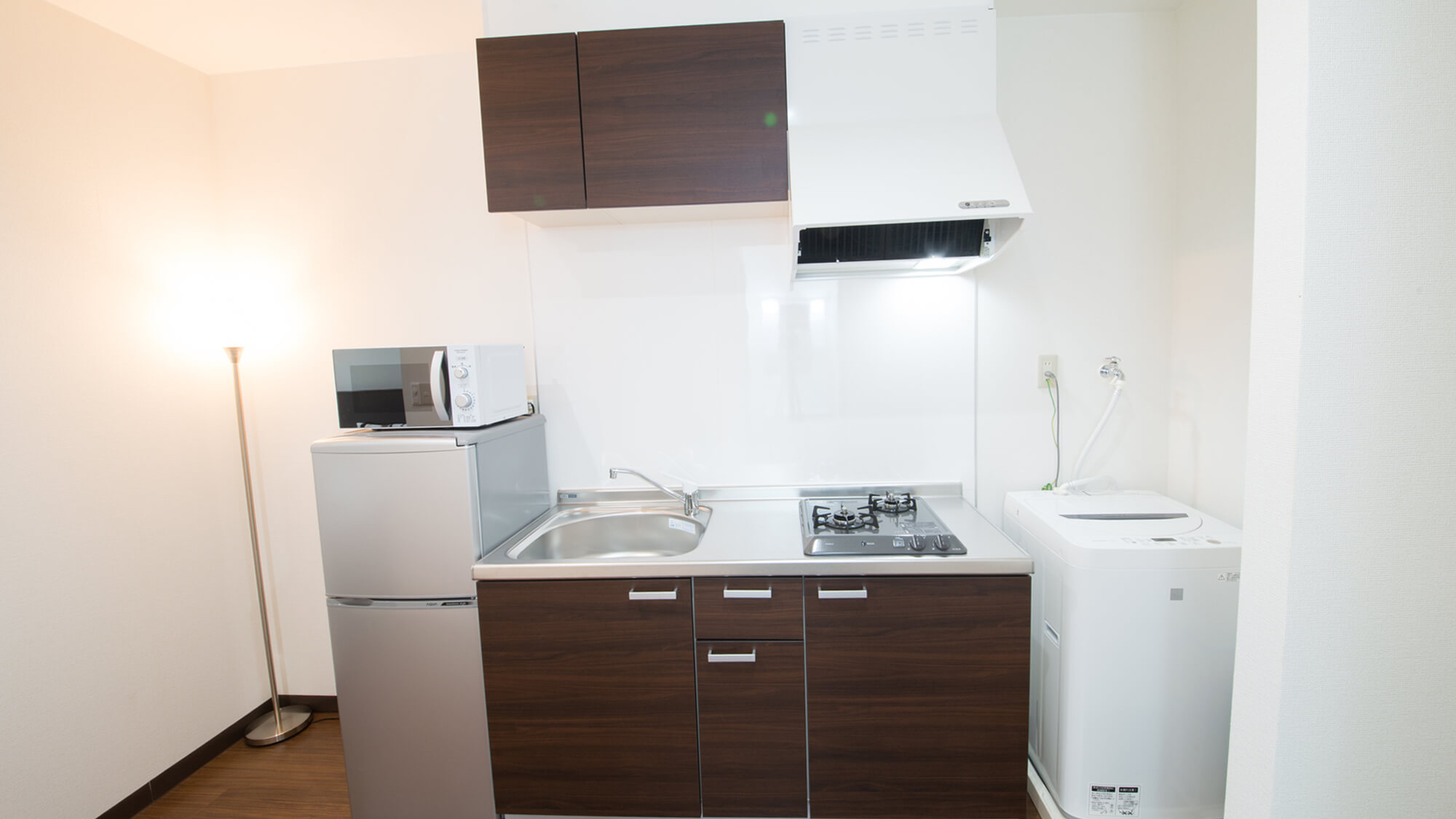 長期滞在も可能な、洗濯機・乾燥機、すぐに調理できるキッチンを備えています。