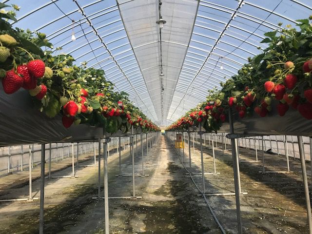 高設栽培のハウスでいちごを育てているので、大人からこどもまで、取りやすい高さにいちごがあります🎵