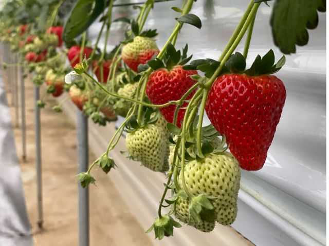 また、ハウス内は通路も広く高設ベンチ栽培なので、立ったまま楽にいちご狩りができ、小さなお子さま連れでも安心🎵