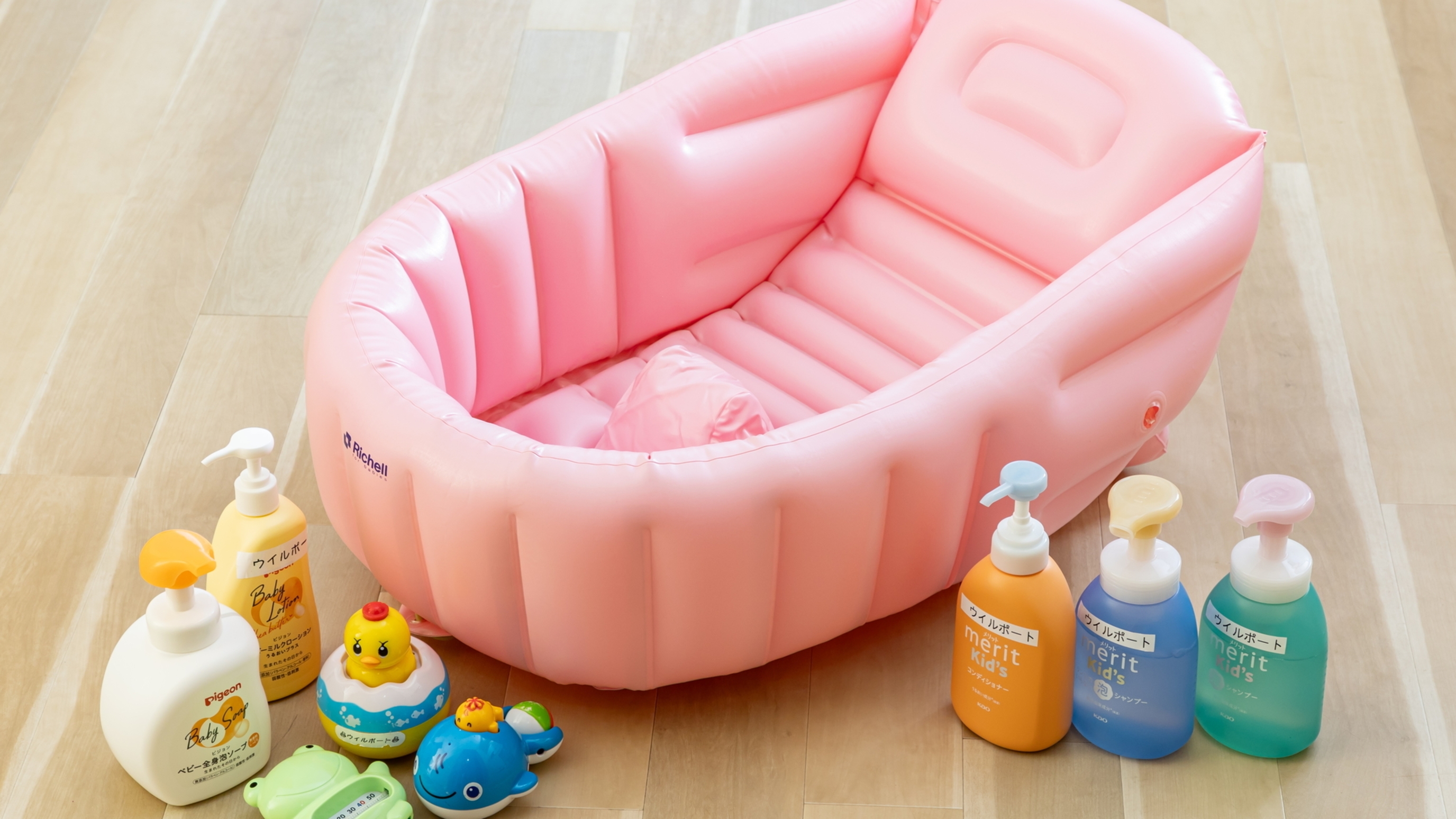 ・ベビー用のシャンプー、リンス、ボディーソープ、ベビーマットをご用意