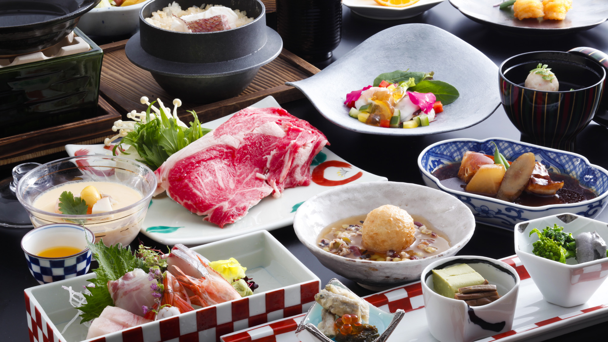 お食事は、瀬戸内海の新鮮な魚介類と自然豊かな山々で育った旬野菜の持ち味を活かし、当ホテルの料理人たちが一品一品真心をこめて調理する会席料理の他、ビュッフェスタイルにて、約50種類のお料理をお楽しみ頂けます。