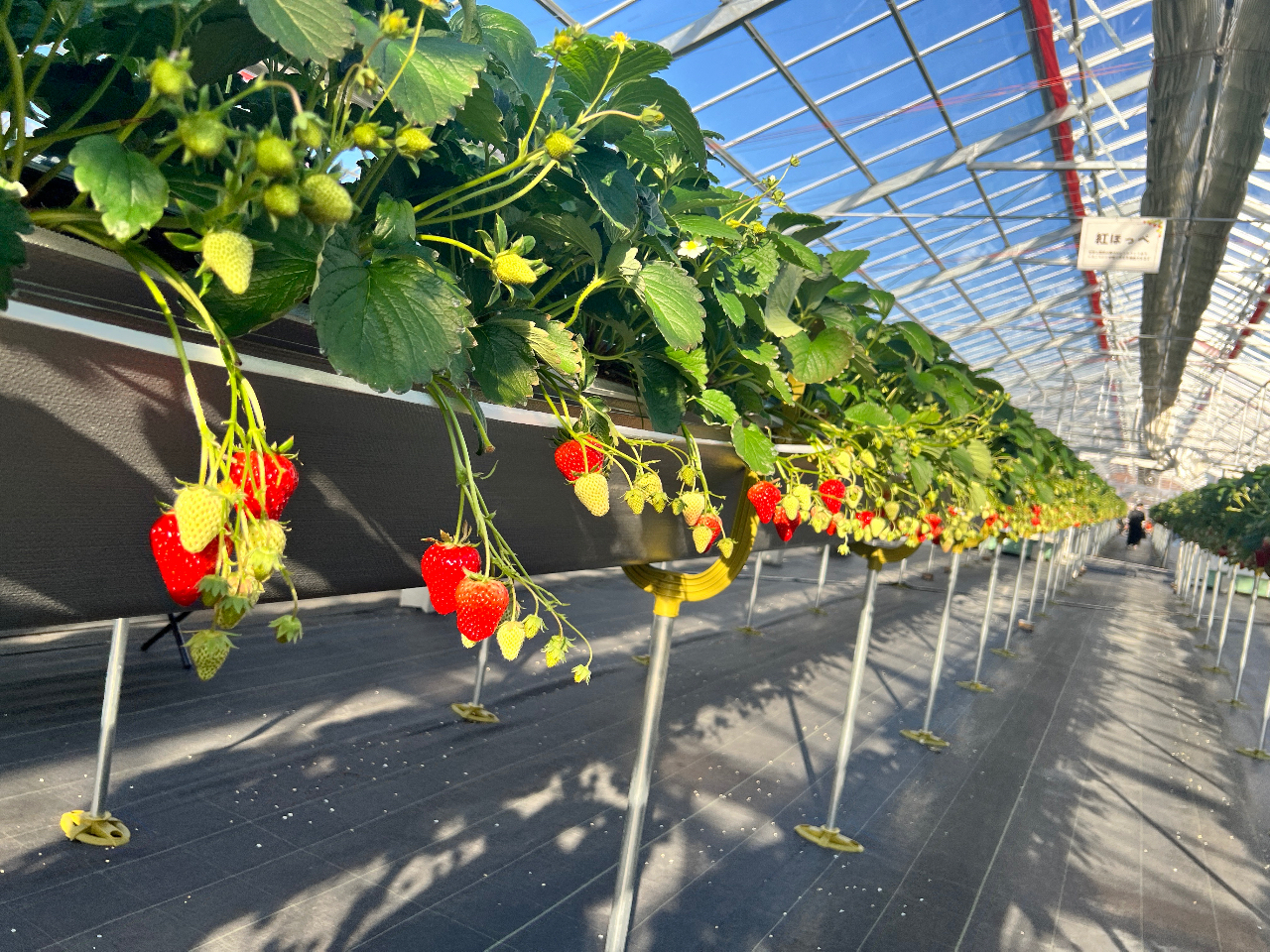 高設栽培なのでいちご狩りもらくらく立ったまま🎵
