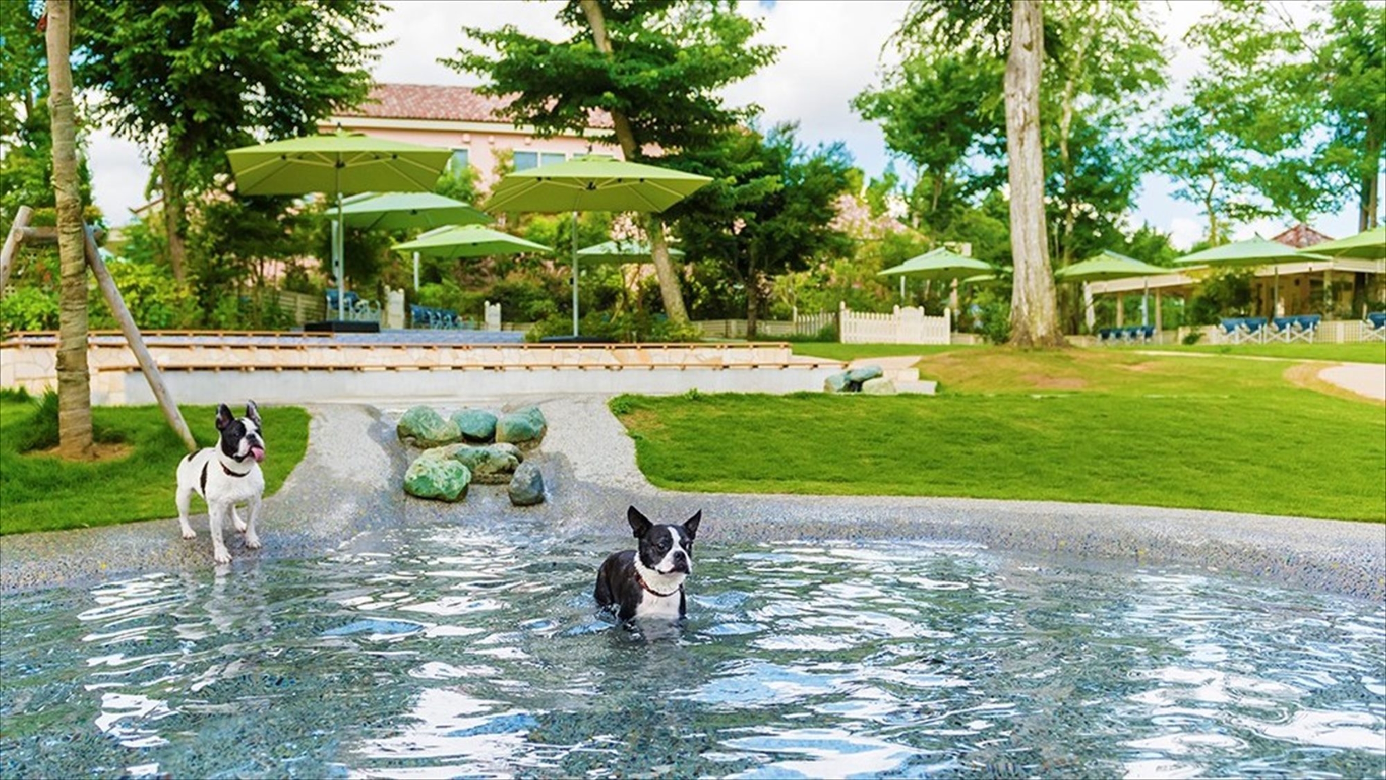 敷地内では、四季の花径を散歩、ドッグランで駆けっこ、ドッグプールやじゃぶじゃぶ池での水遊びなど、1日中愛犬と遊ぶ贅沢をご堪能ください!