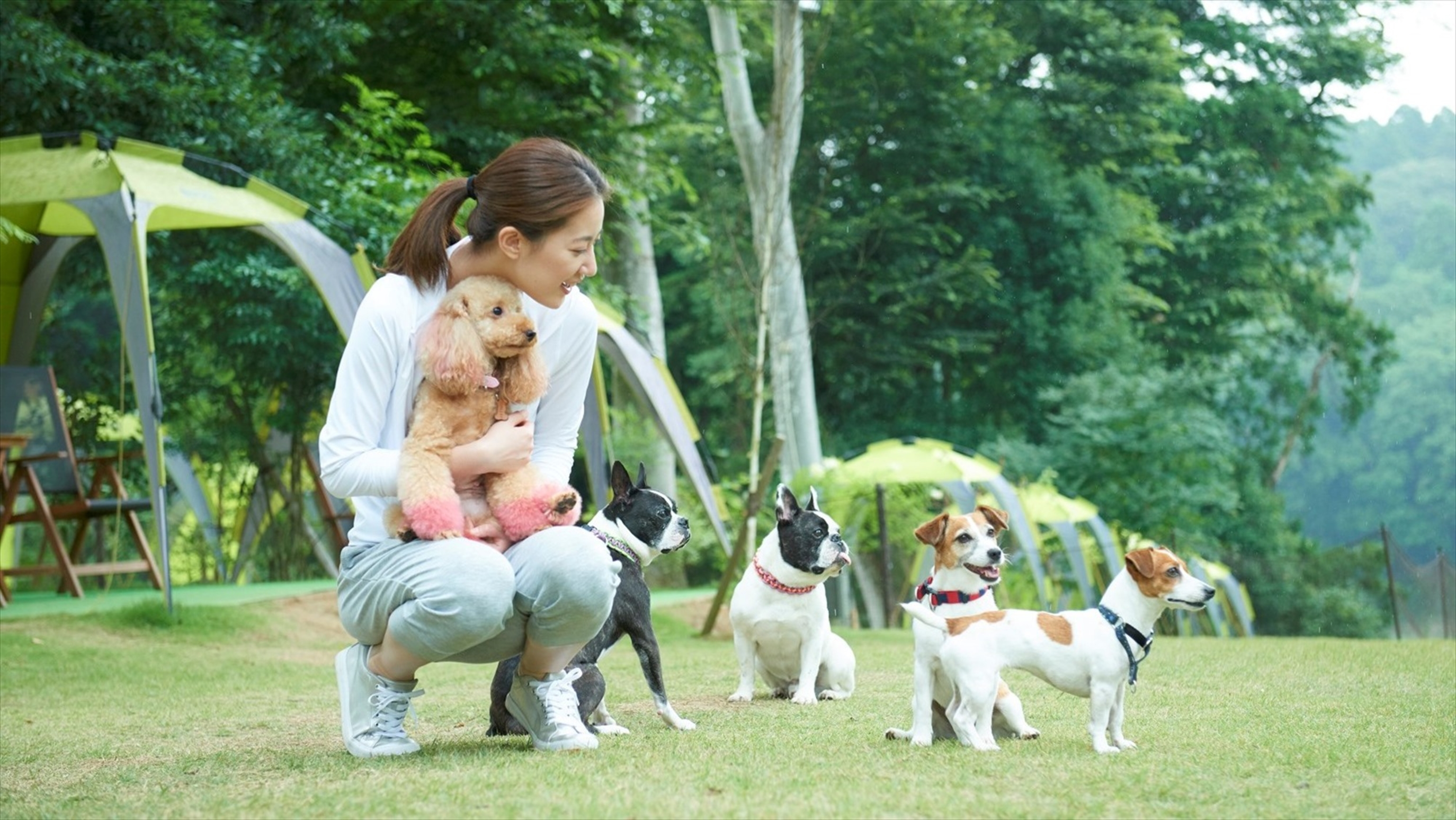 ペット同伴可能な宿・ホテルは数多くありますが、アウトドア体験をしつつ、ドッグランはもちろん、ペット同伴向けに充実したサービスを提供する「グランピング」での滞在はワンちゃんとのふれあい、思い出に残る自然体験としても最適です!