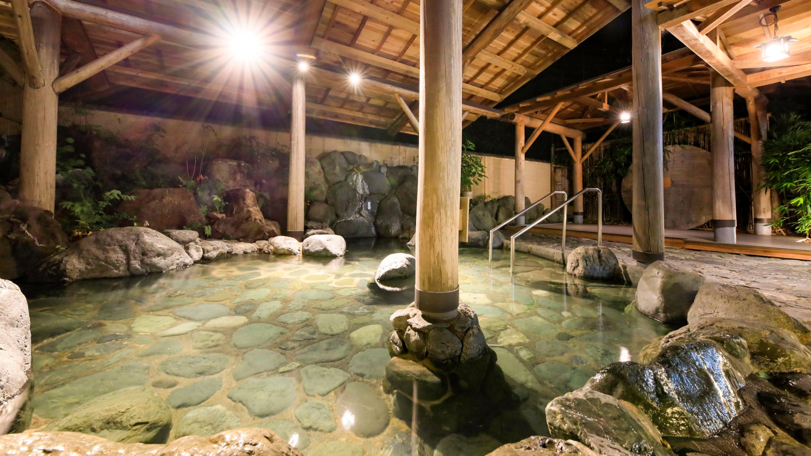 天然温泉施設では、男女それぞれ露天風呂・内湯が利用できる他、ドームとヴィラ全室(半)露天風呂付きとなっておりますので「美人の湯」と言われ、肌がすべすべになる泉質自慢の中川温泉をゆっくりとお楽しみください!
