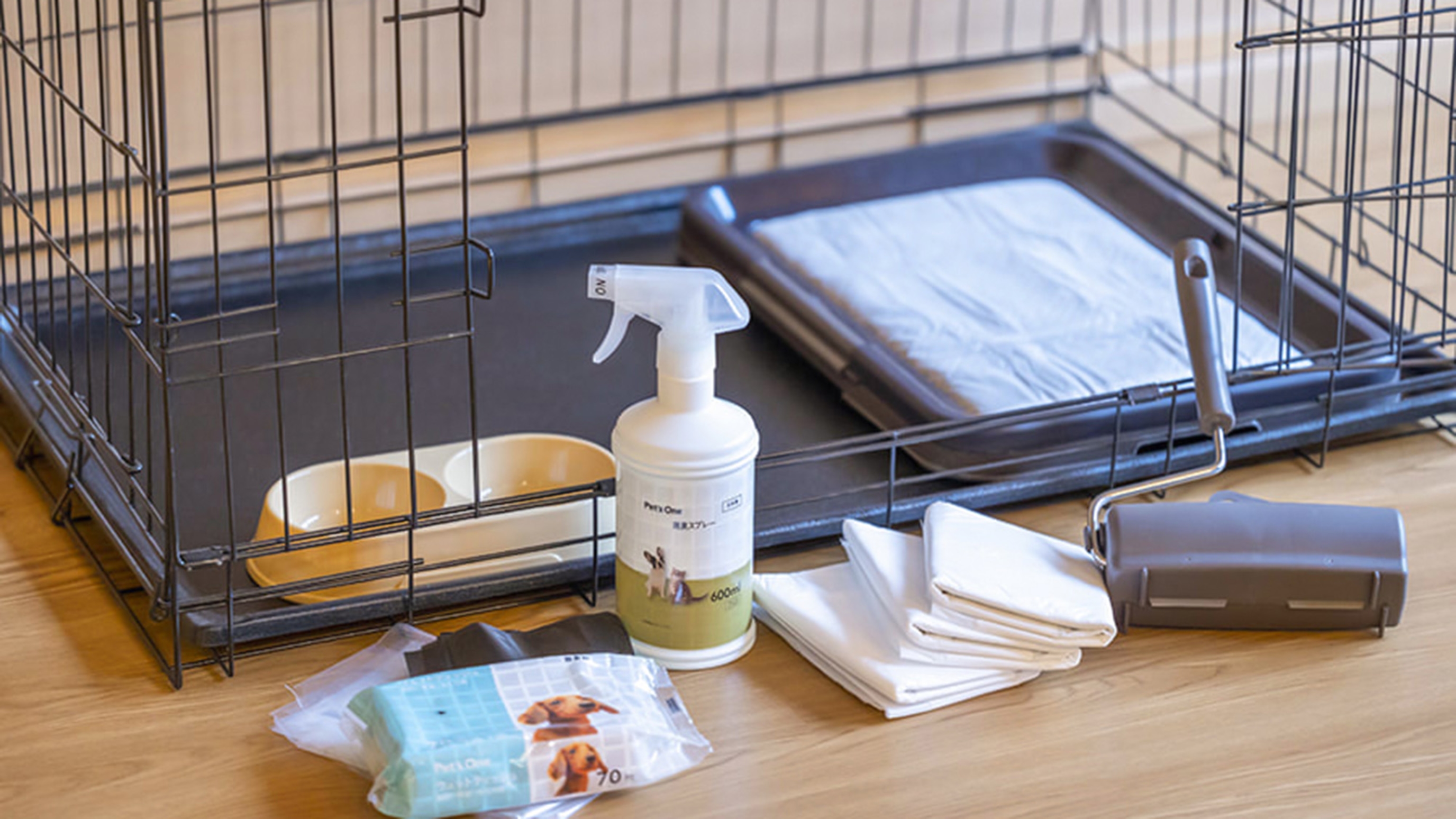 ペットシーツ、エサ入れ、ワンちゃん用のごみ箱をそれぞれ備え付けていますのでこちらもご利用いただけますよ!