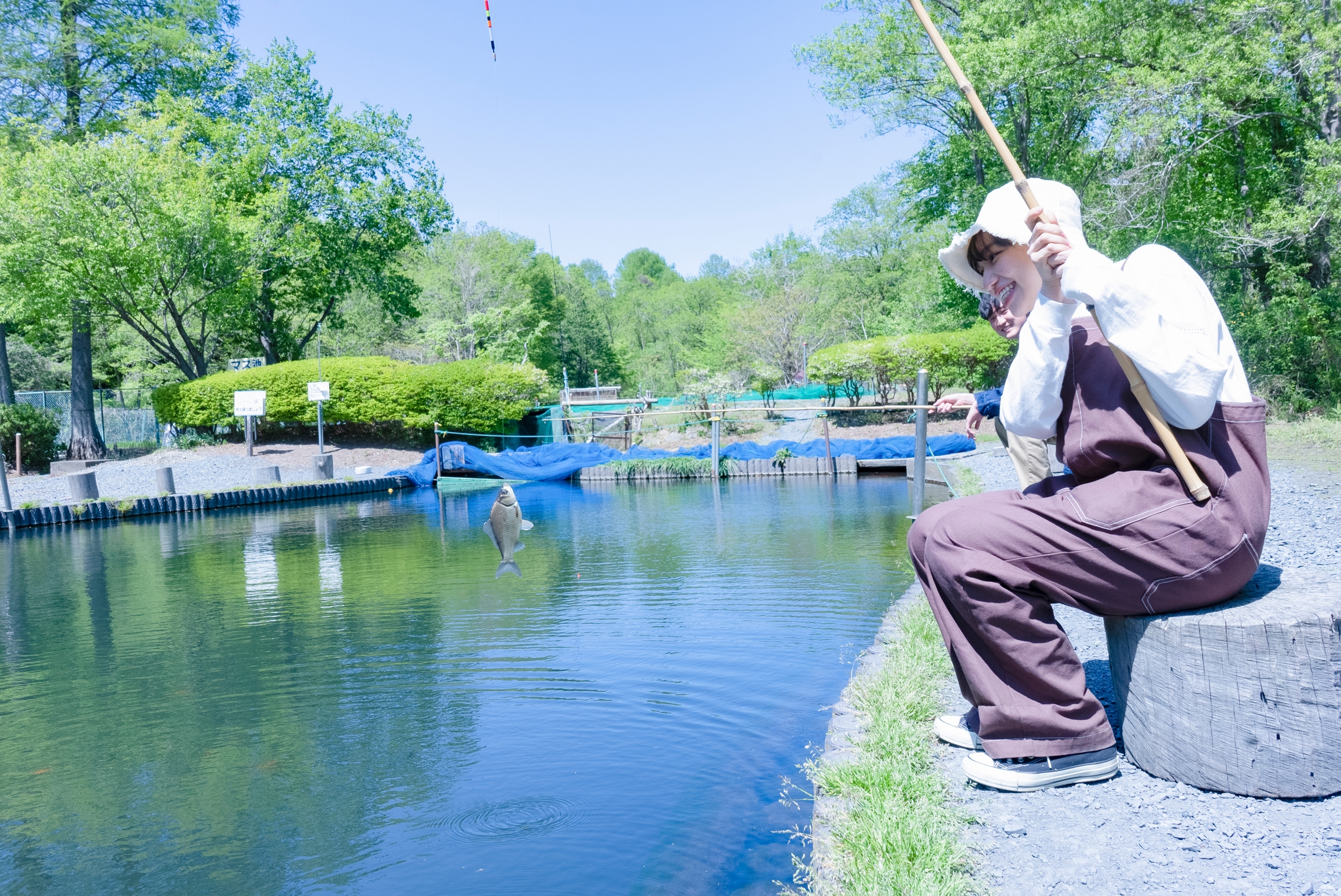 釣り池では大人から子供までニジマス、コイ、ヘラブナ、金魚を釣ることができ、ニジマスはお持ち帰り可能!