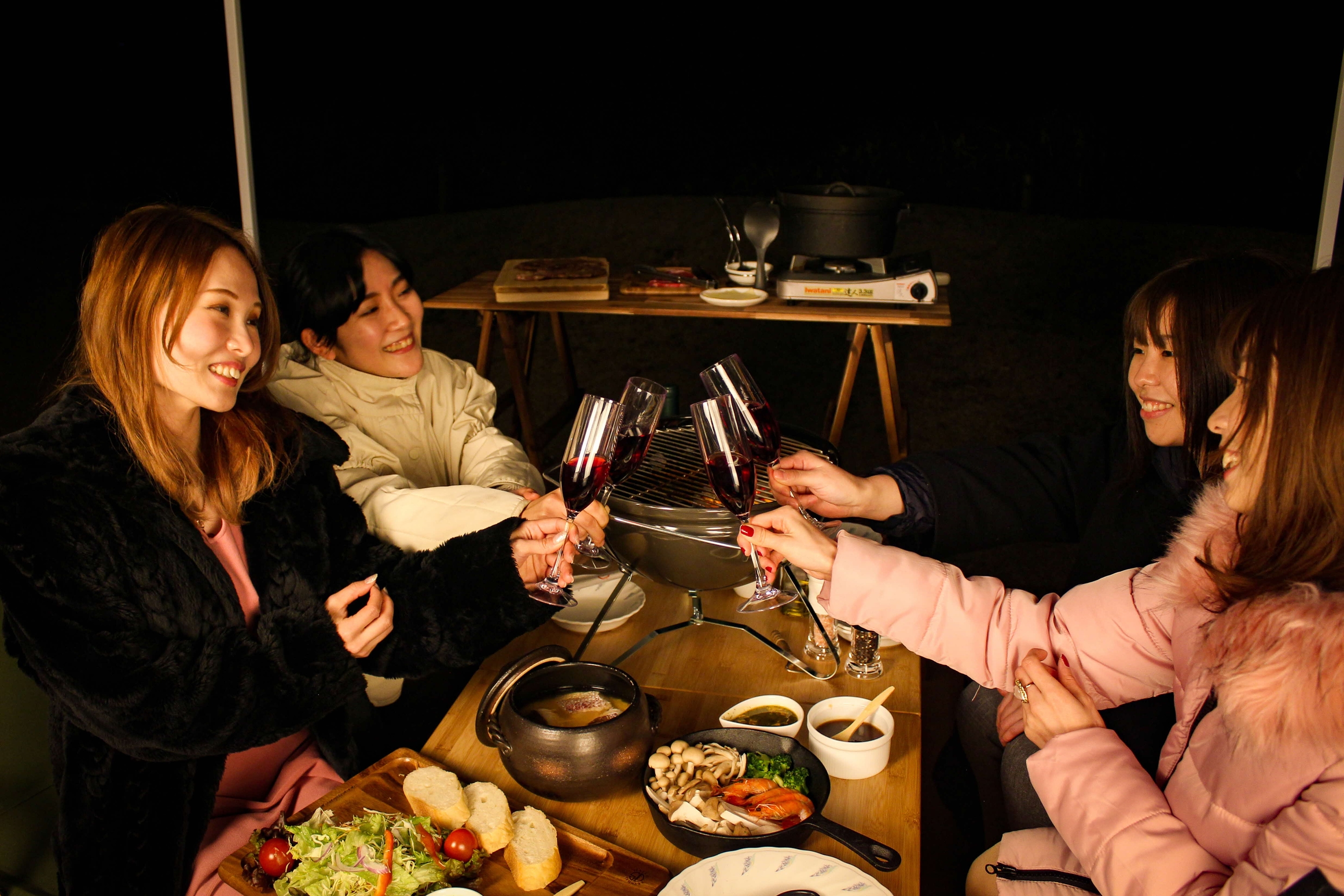 ロッヂでの宿泊の他、グランピングを愉しむこともでき、自然を身近に感じることができる「絶景テント」は視界を遮るものがなく、日光白根山や四郎岳などの眺望や、人里が眼下に広がる最高のロケーションで通年グランピングを楽しむことができます。