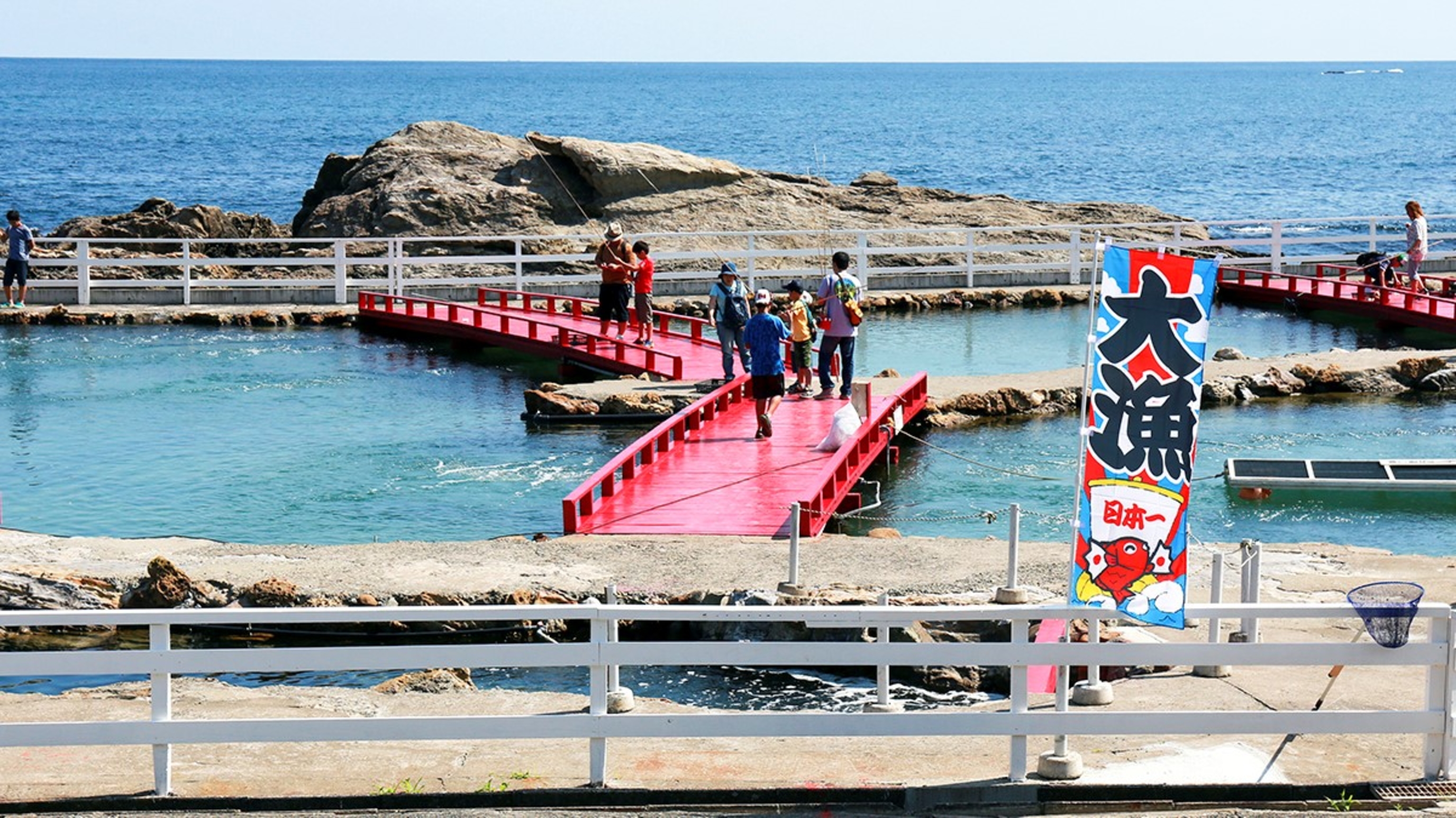 太平洋に面した「海の釣堀」では、本格的な磯釣り気分で、釣りをすることができ、貸し竿、餌付きなので手ぶらでOK!