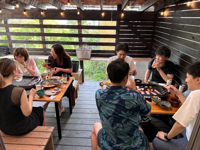 リバーサイドのBBQラウンジを貸切れば完全プライベート空間での仲間とのBBQパーティーに最適です!