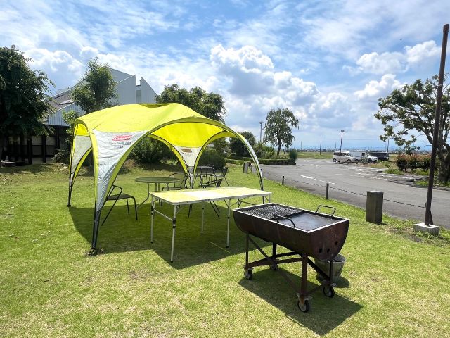 「ヘルシーパル赤城」の敷地内にバーベキュー会場があり、機材・食材・イス・テーブルまで全て施設でご用意。
