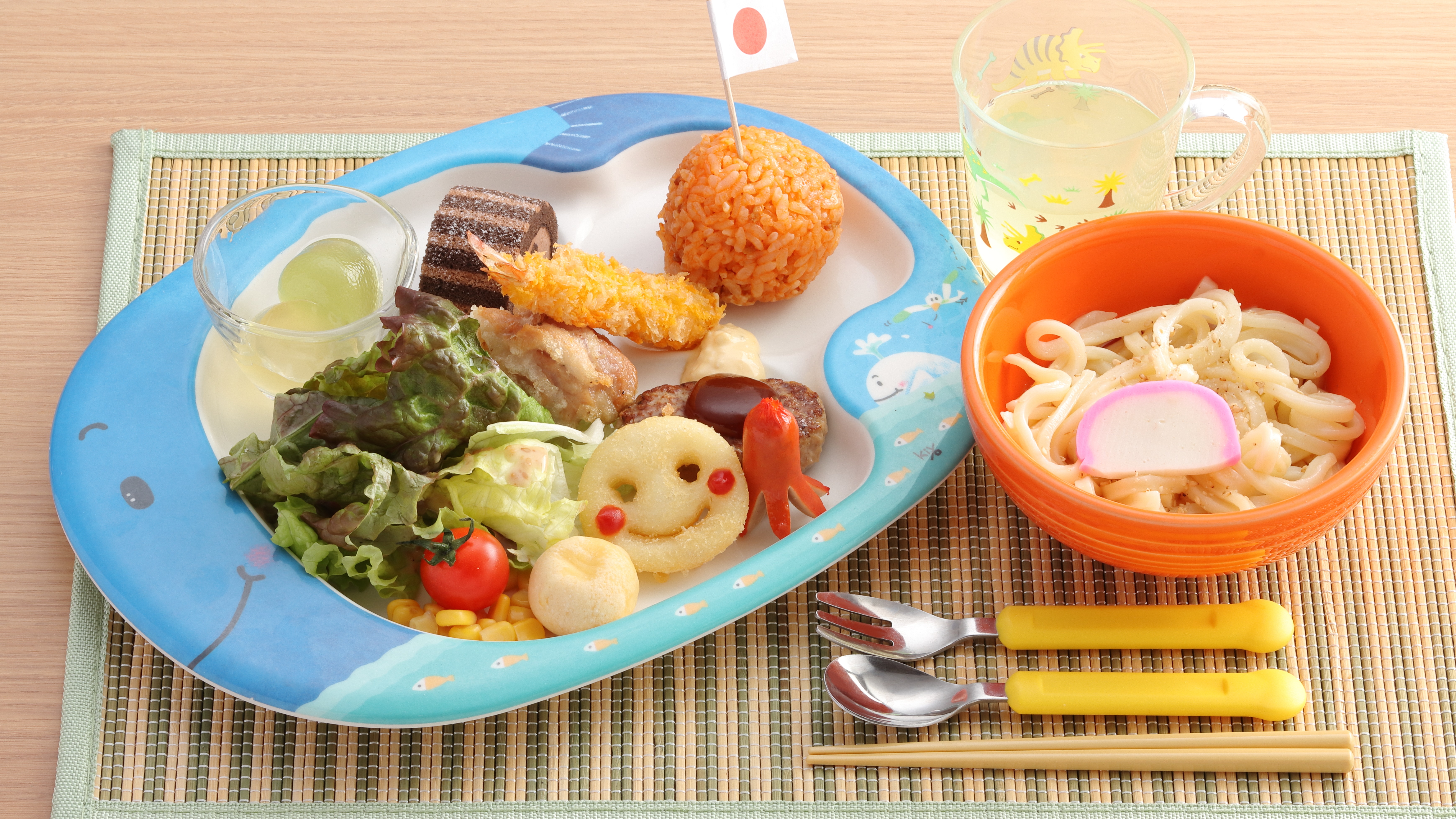 ハンバーグやお寿司のプレート、うどんにラーメン、ポテトや唐揚げがついた選べるお子様セットは子供に大人気です🎵