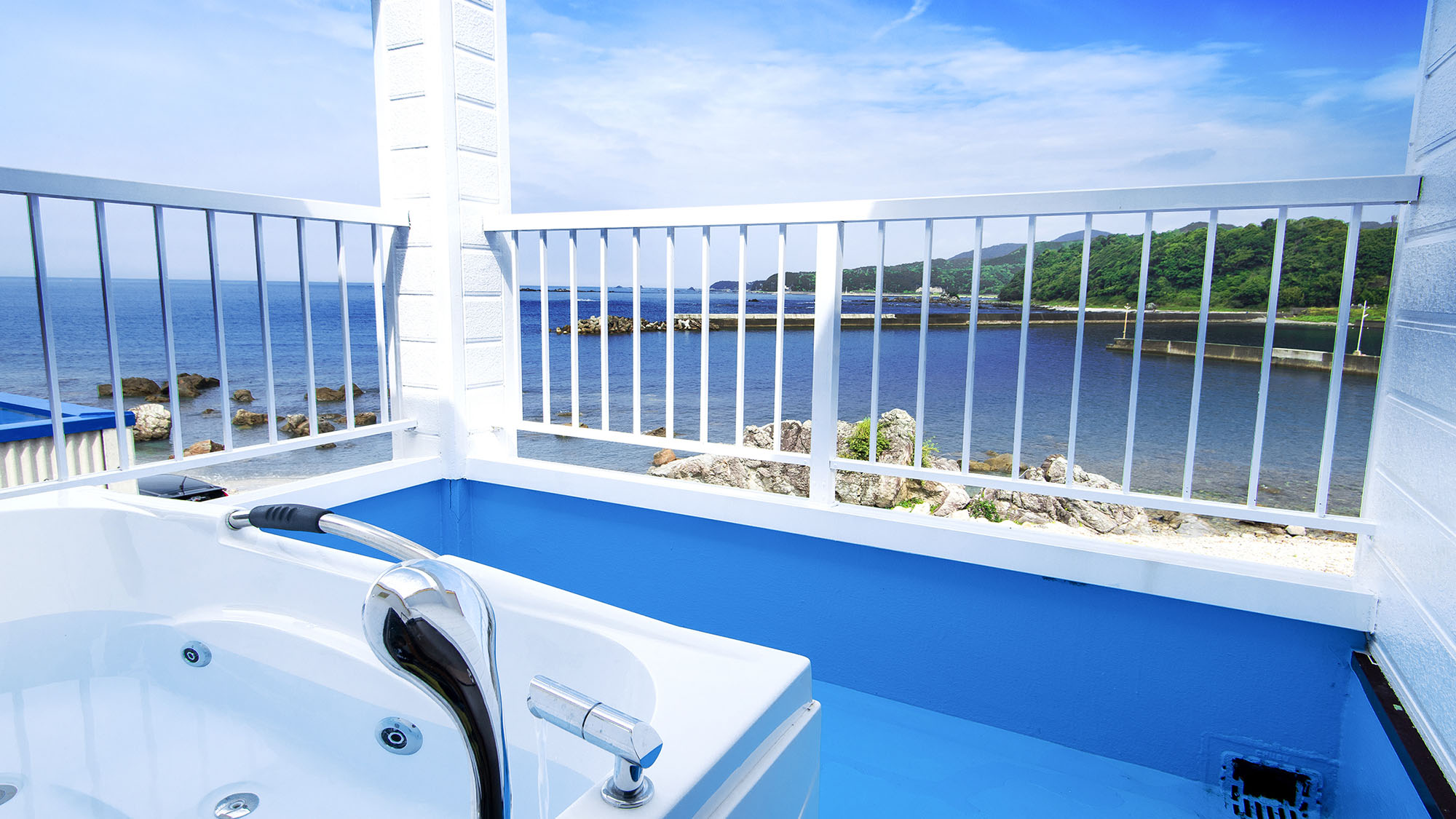 清潔感溢れるジャグジーを備えたお部屋では、海を眺めながら足を伸ばしてゆったりとご利用いただけます🎵