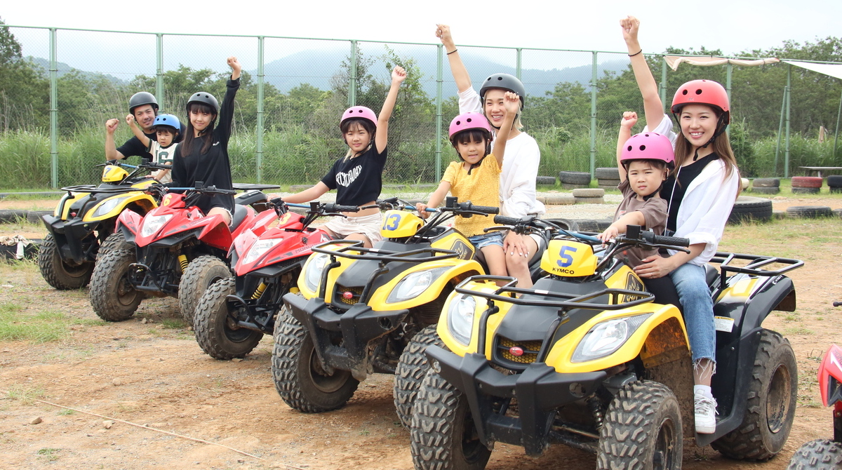 ふわふわドームや大型ネットアスレチック、サッカーダーツやストラックアウトなど、様々な遊びを楽しめるエリアの他、迫力満点のバギーで爽快に走ったり、ハイキングを楽しんだり、夜はイルミネーションと1日中お楽しみいただけます🎵
