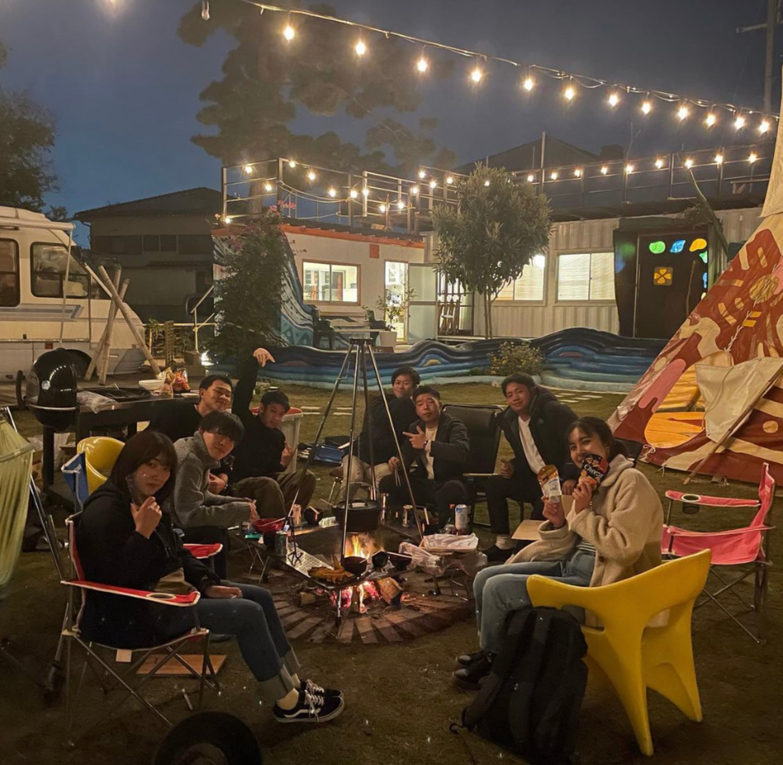 宿泊はエアコンを完備したキャンピングカー、屋上付きでグループでのパーティーにもおすすめのヴィラ、ロフト付き寝室を備えたオレンジルームを用意!