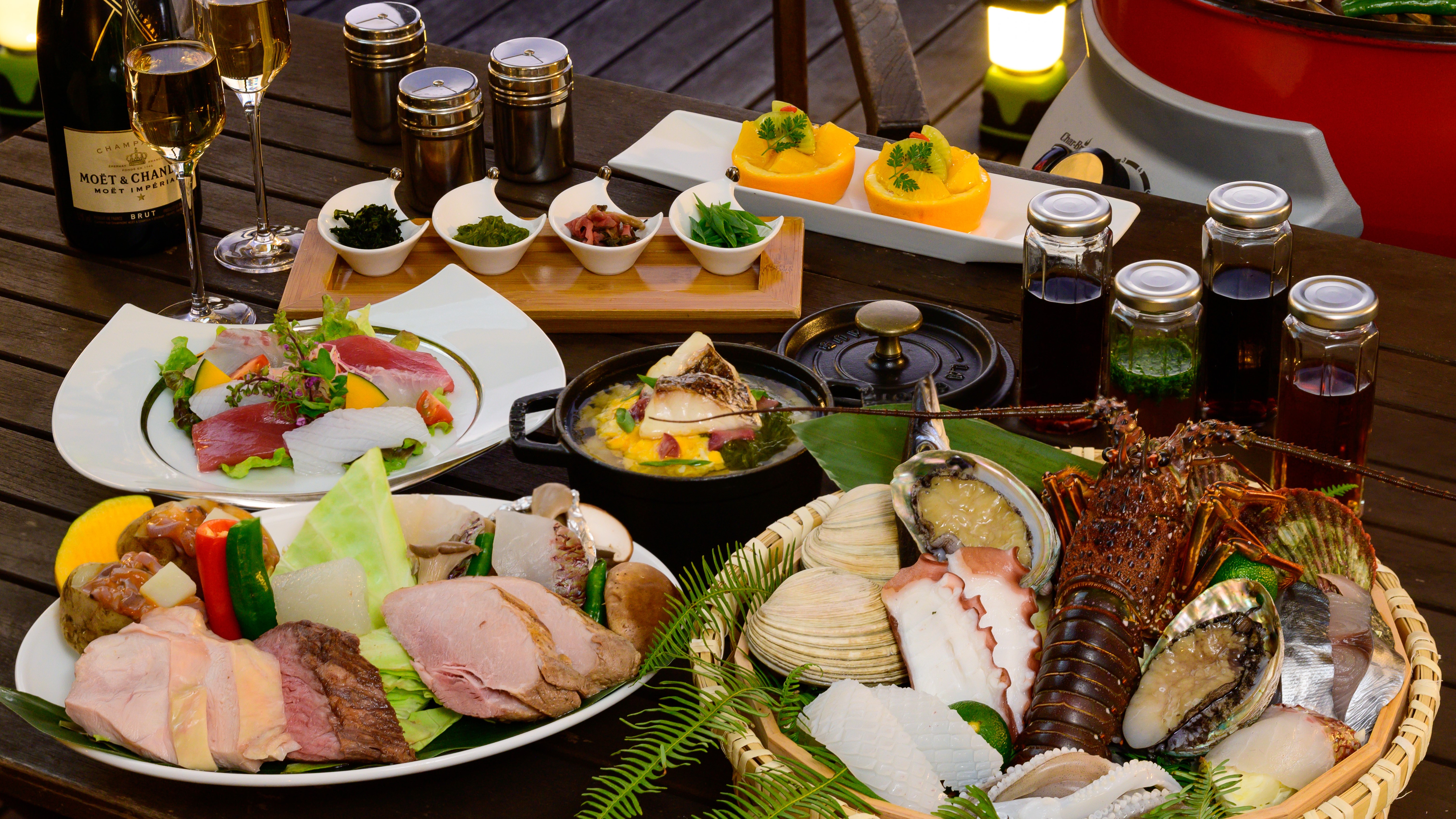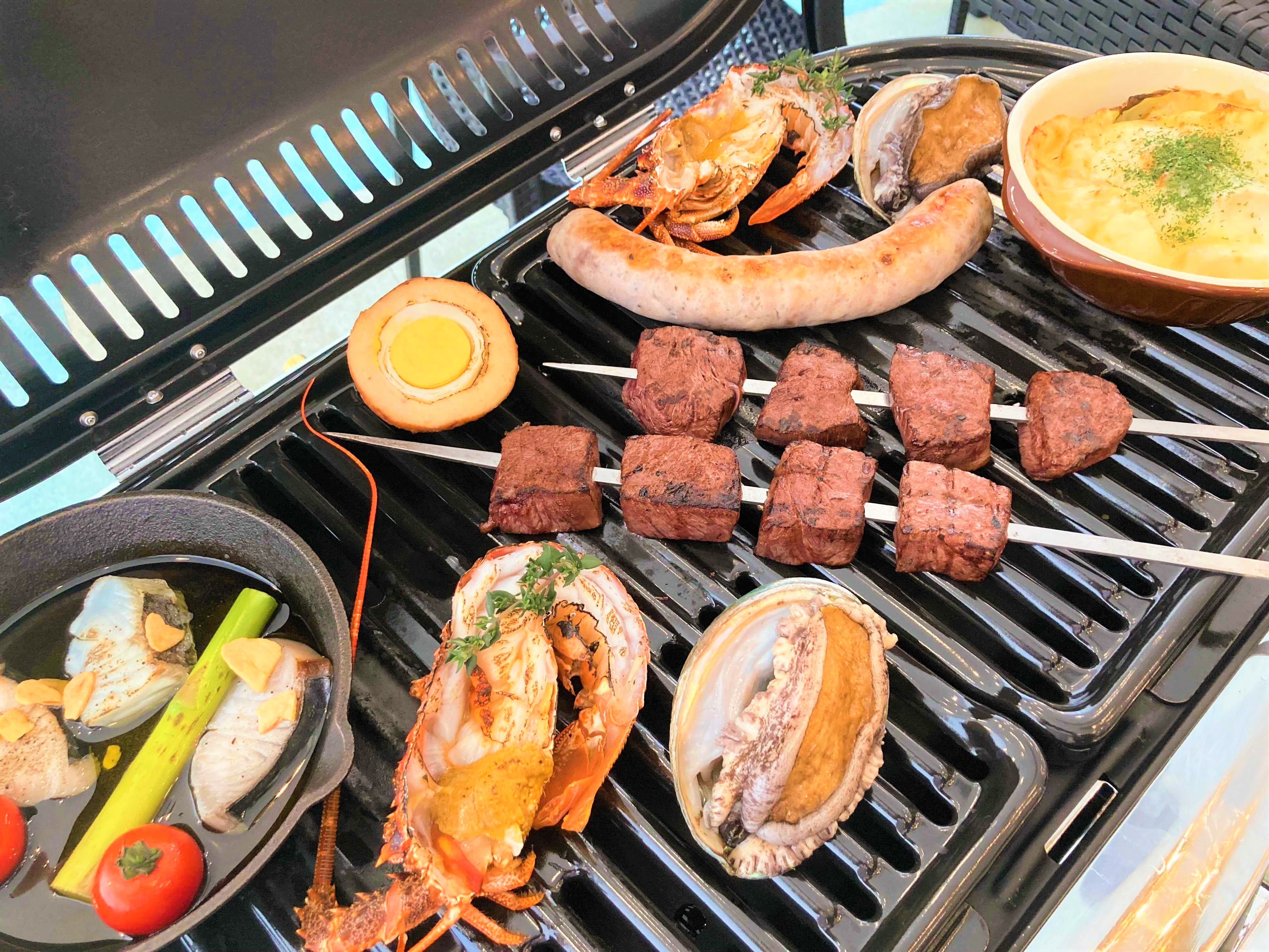 お食事は但馬牛や香住の海の幸を豪快にグリルしていただくこだわりのグランピングBBQ。