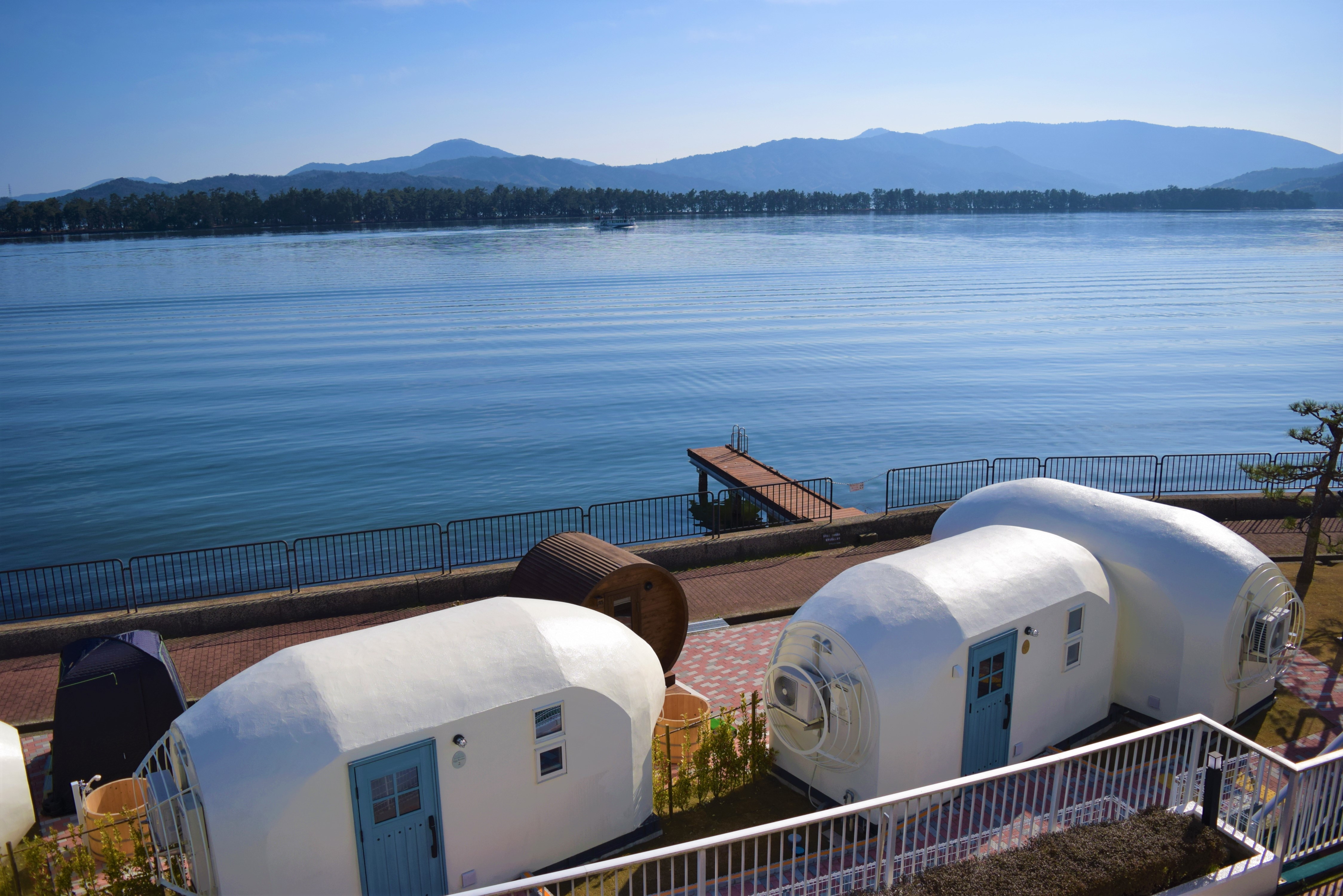 天橋立が目の前に横一文字で広がり、季節の会席料理と天然温泉が自慢の宿「ザ グランリゾート 天の橋立」には絶景グランピングが楽しめる「エッグルーム」を完備。