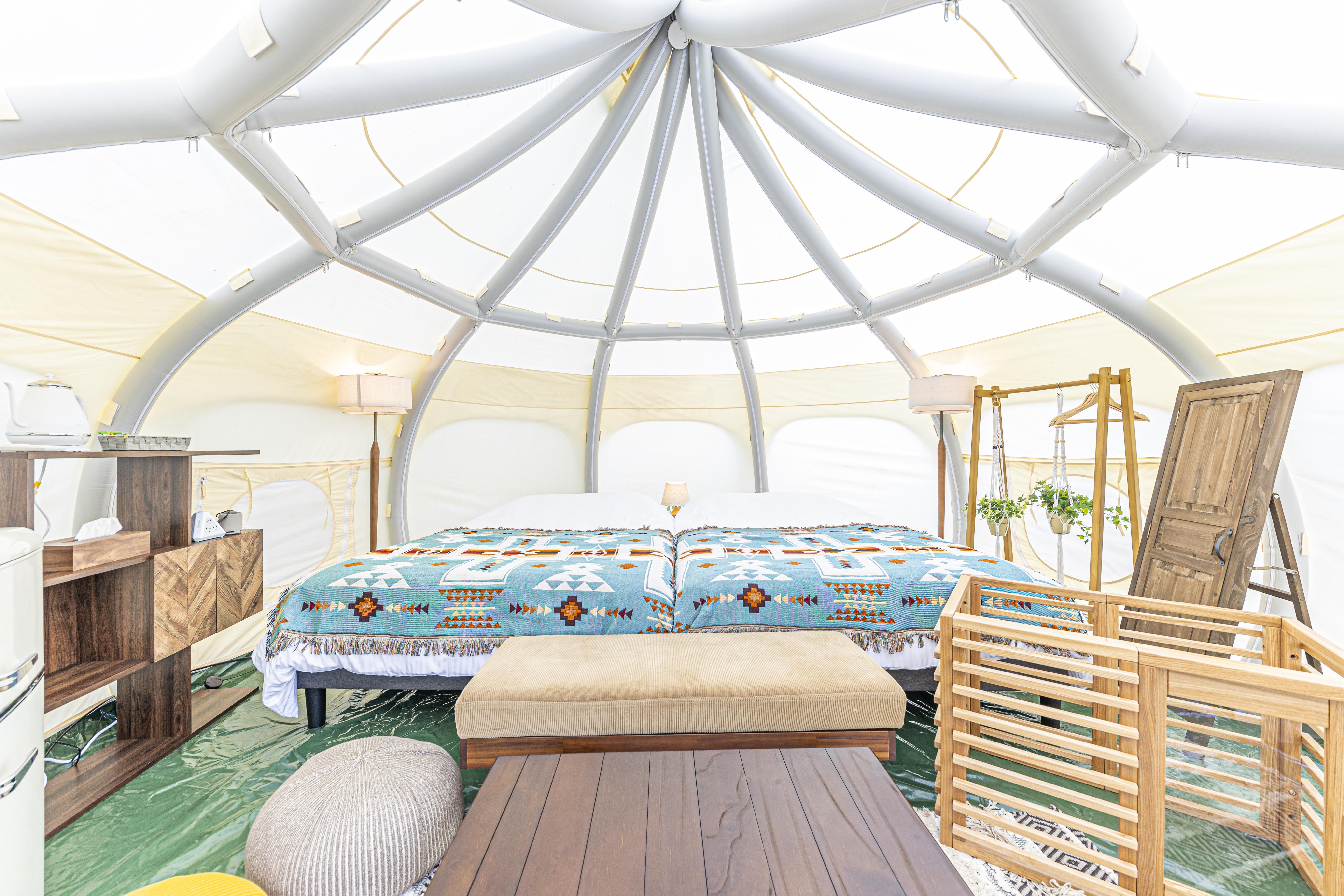 グランピング体験できる全4テントはプライベート感のある空間を確保。