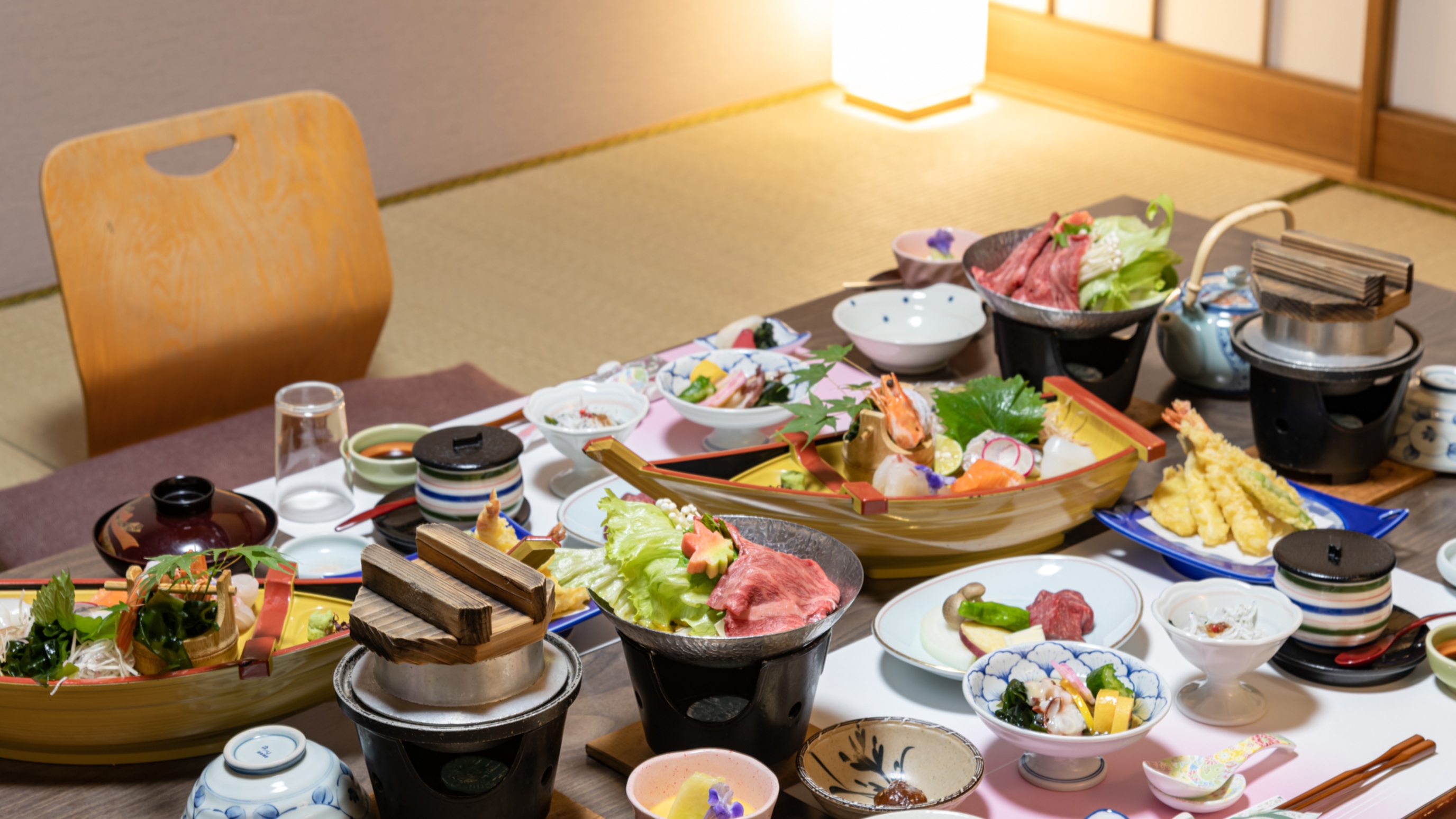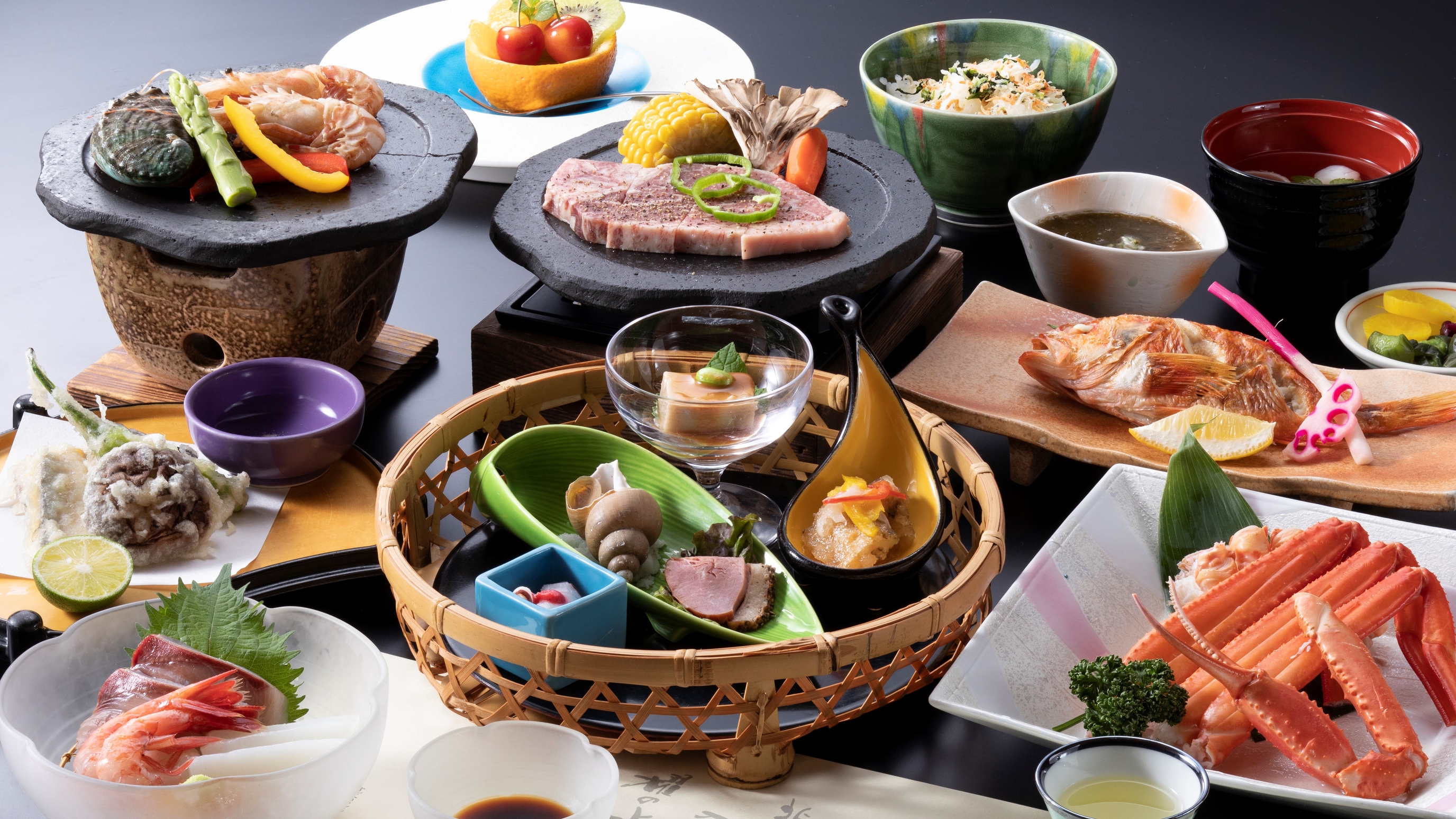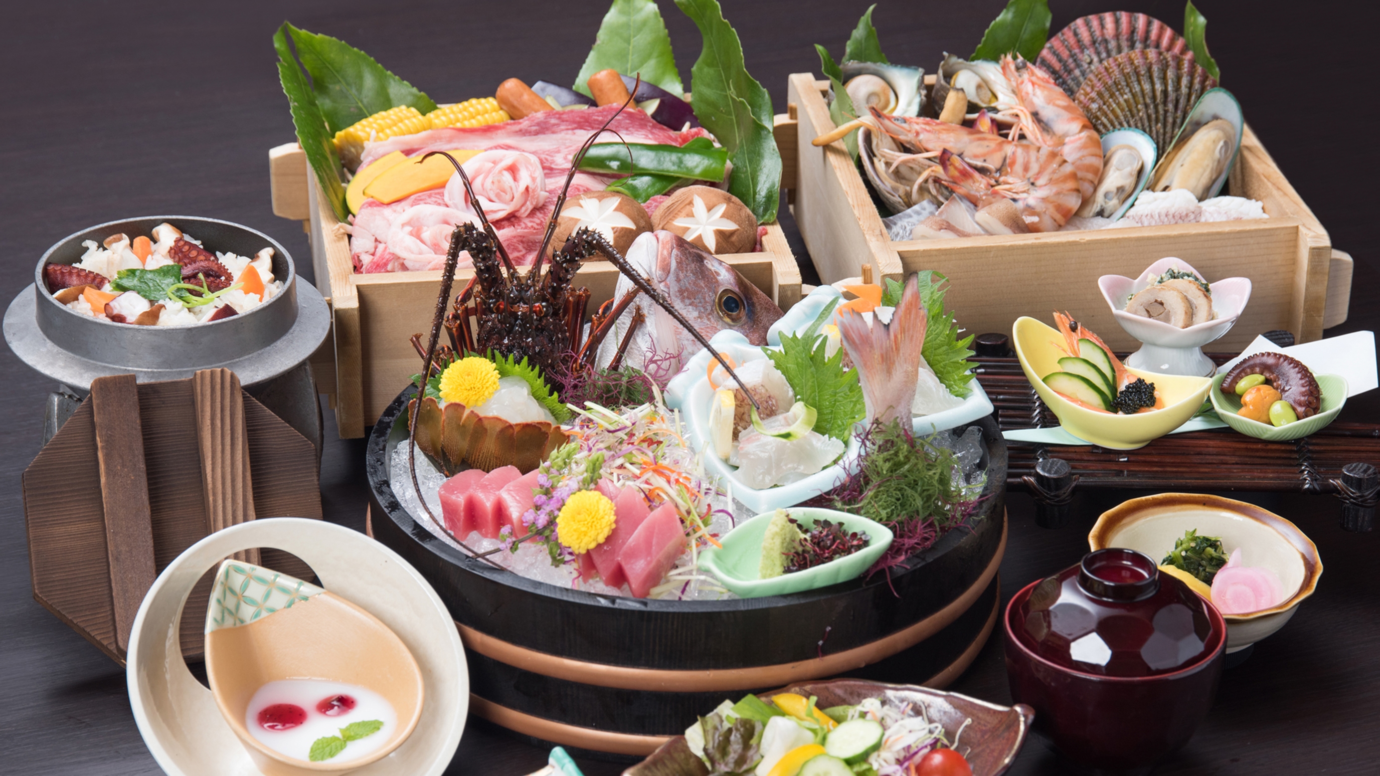 地元だからこそ味わえる厳選された新鮮な海の幸などの素材を中心に、四季折々の旬を用いた会席コース、ディナービュッフェをお楽しみいただけます。