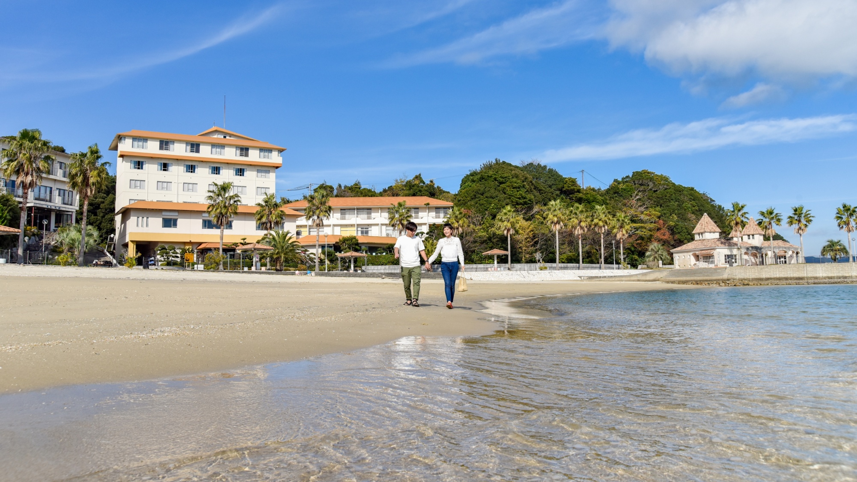 ホテル前の「わたかのパールビーチ」は天候問わず年中波が無く、小さなお子さまの砂遊びや海水浴に最適🎵