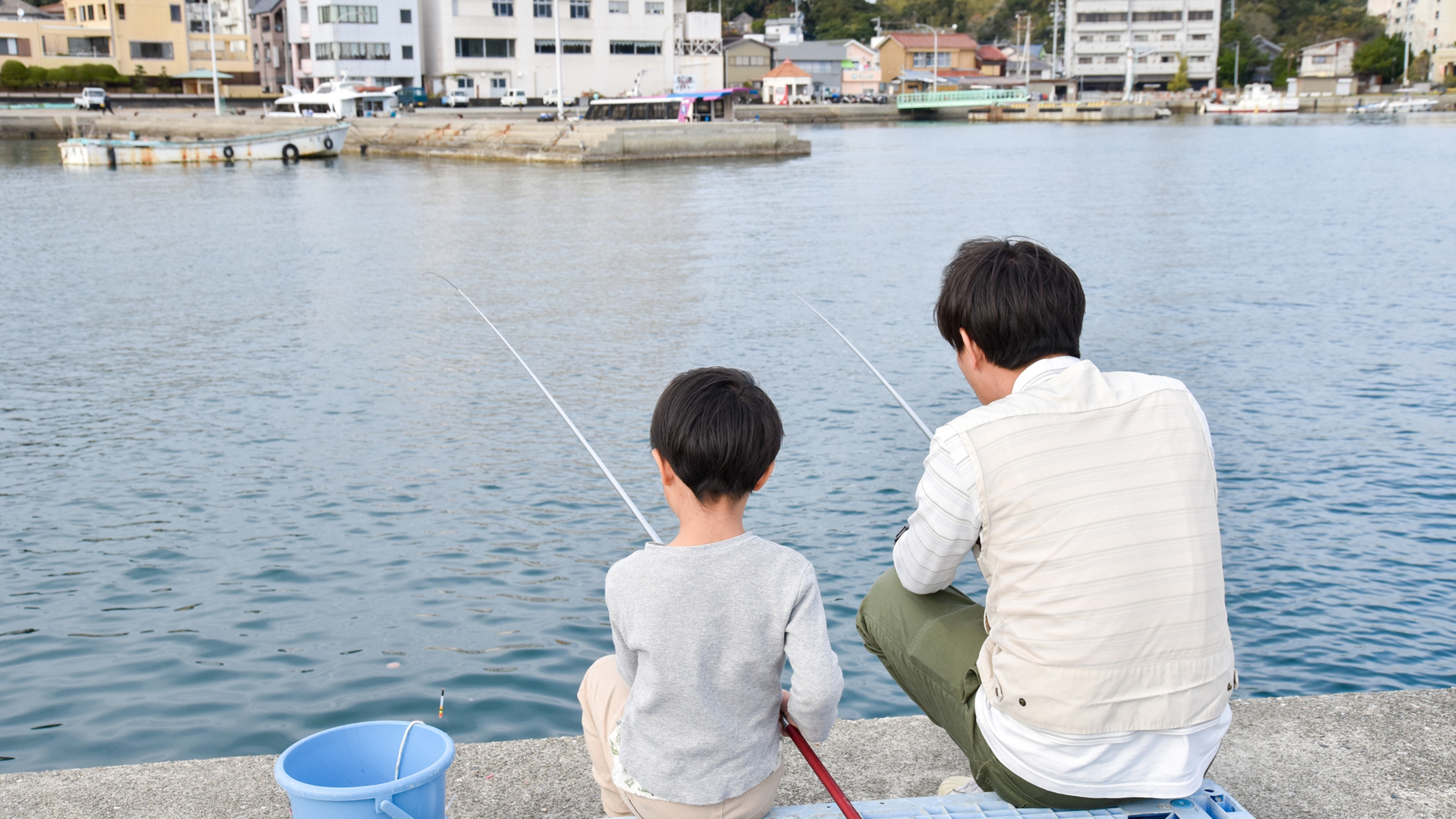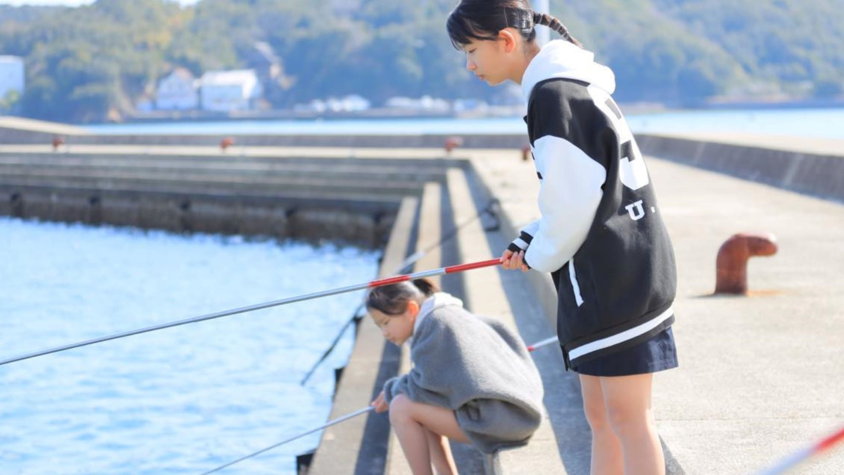 宿、目の前の港は、季節を問わず様々な魚種が釣れる人気スポットなので初心者やお子様も簡単に魚釣りをお楽しみいただけます!