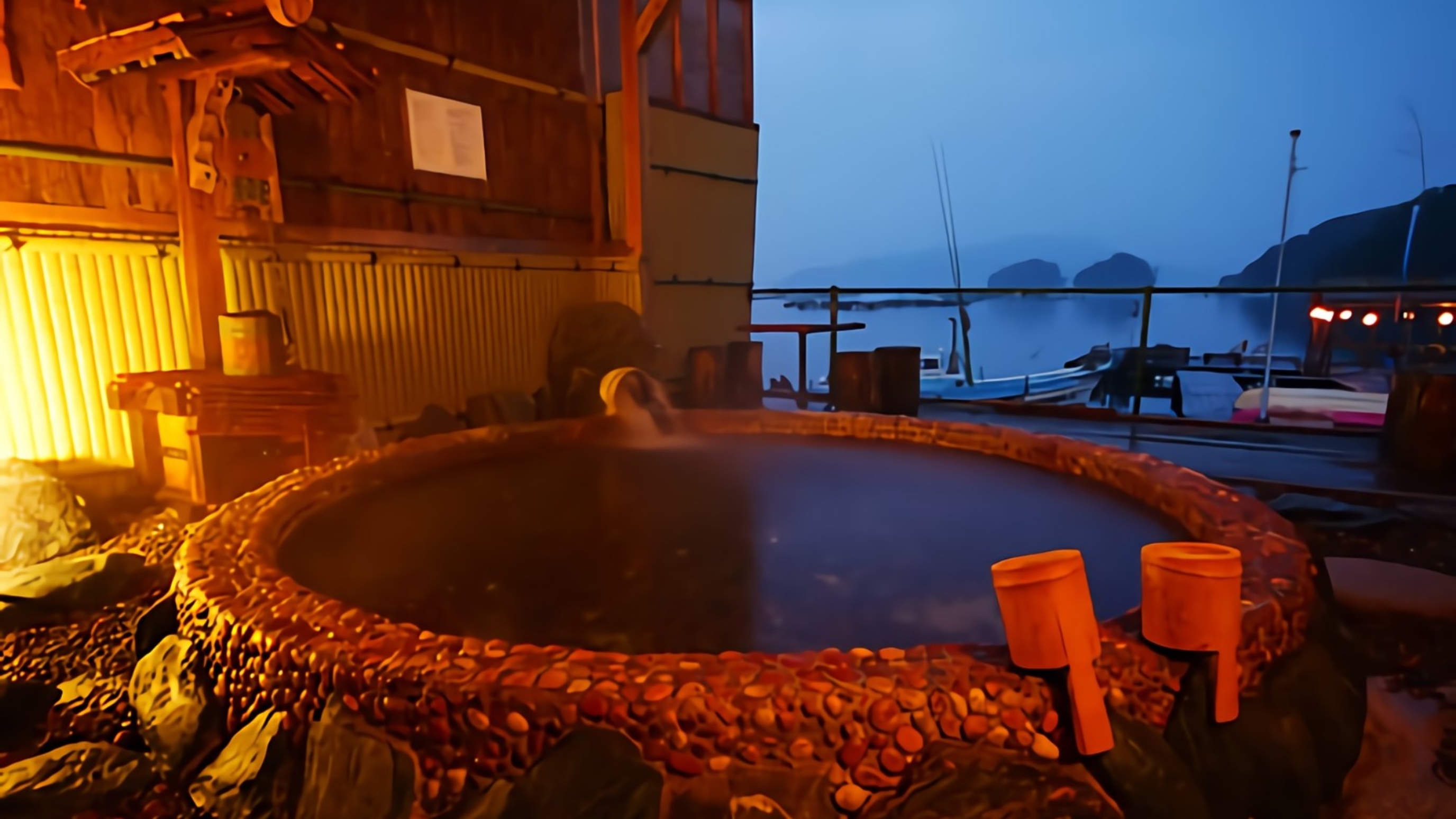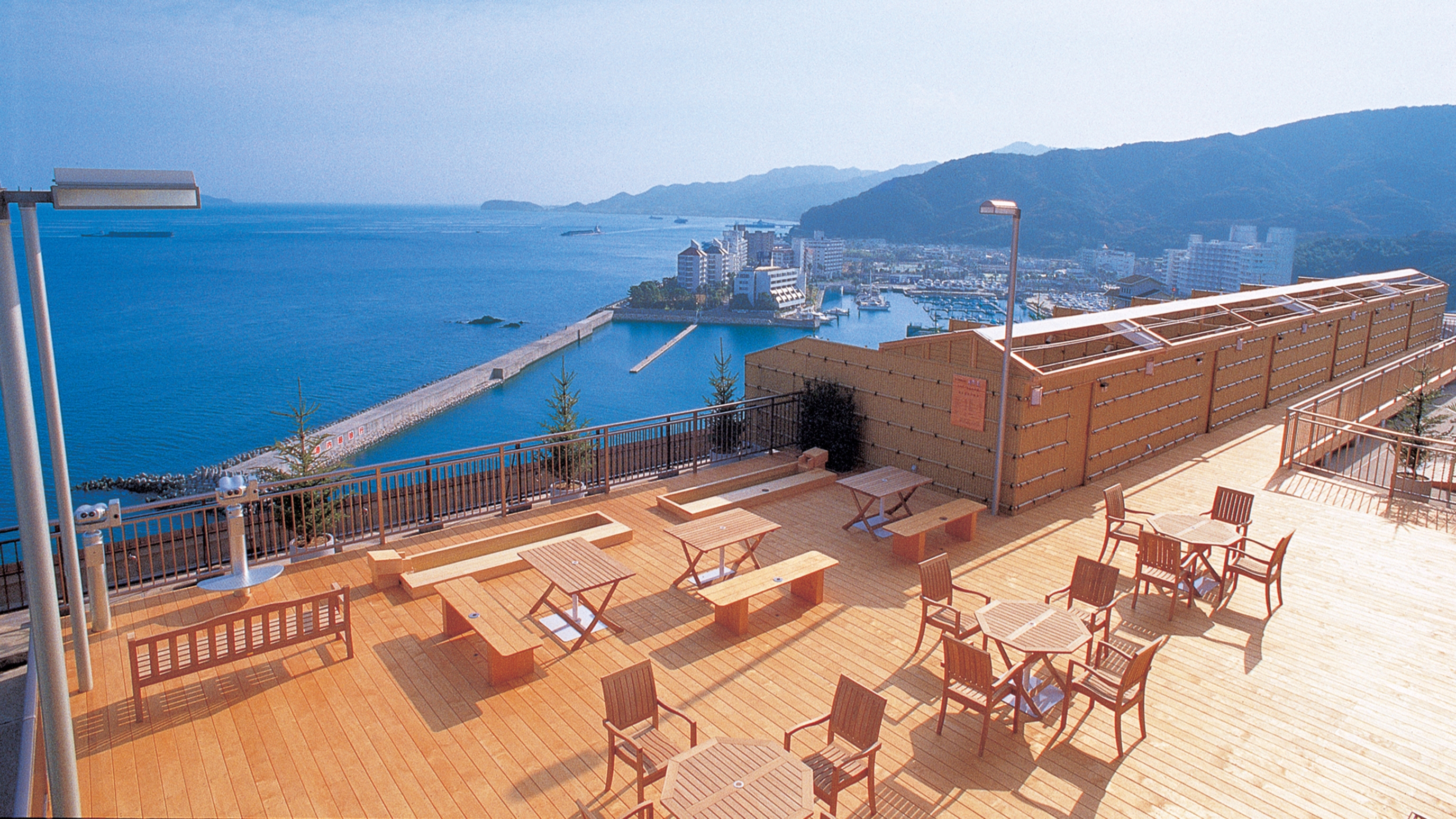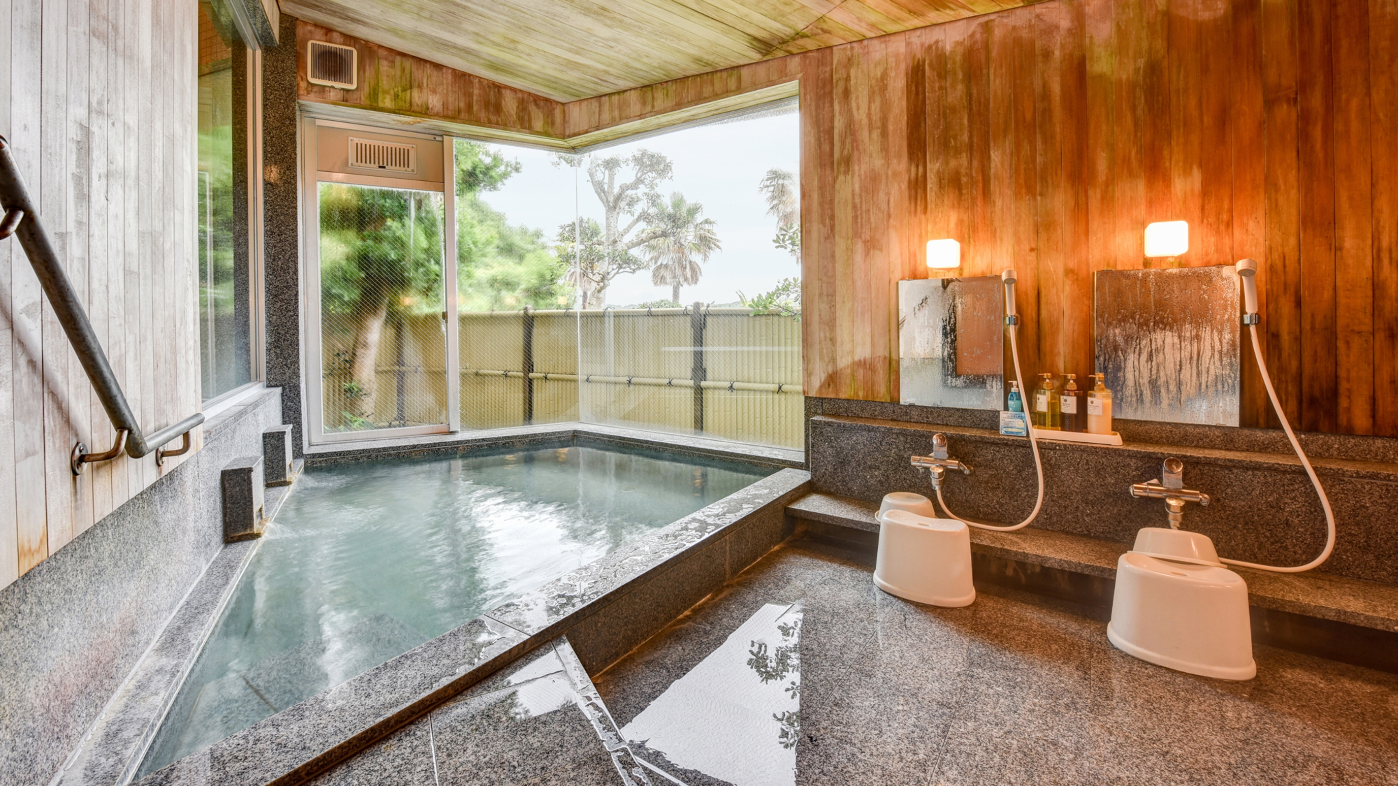 美しい賀田湾のパノラマが一望できる大浴場は、海までわずか10センチ。