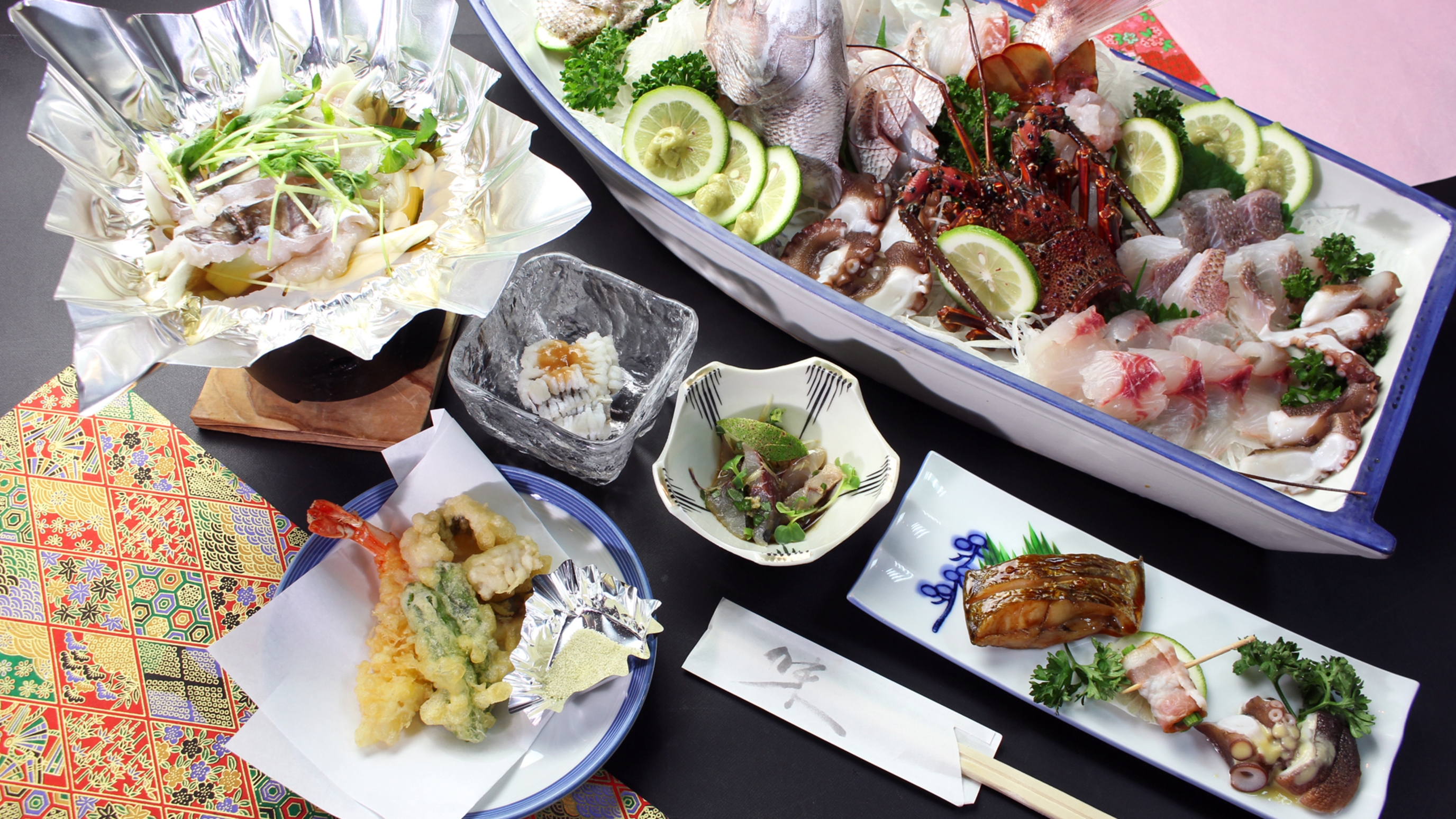 尾鷲シーサイドビューでは超高級魚「天然クエ」のフルコースをはじめ、季節の魚介類会席、活伊勢海老会席などなど豪華絢爛なコースをご用意していますのでプランによってお選びいただけます。