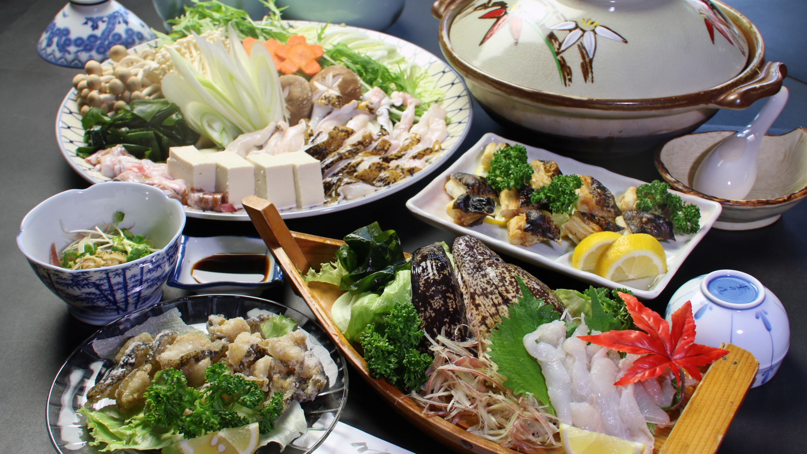 夕食で是非、味わいたいのが「天然クエ」のフルコース!