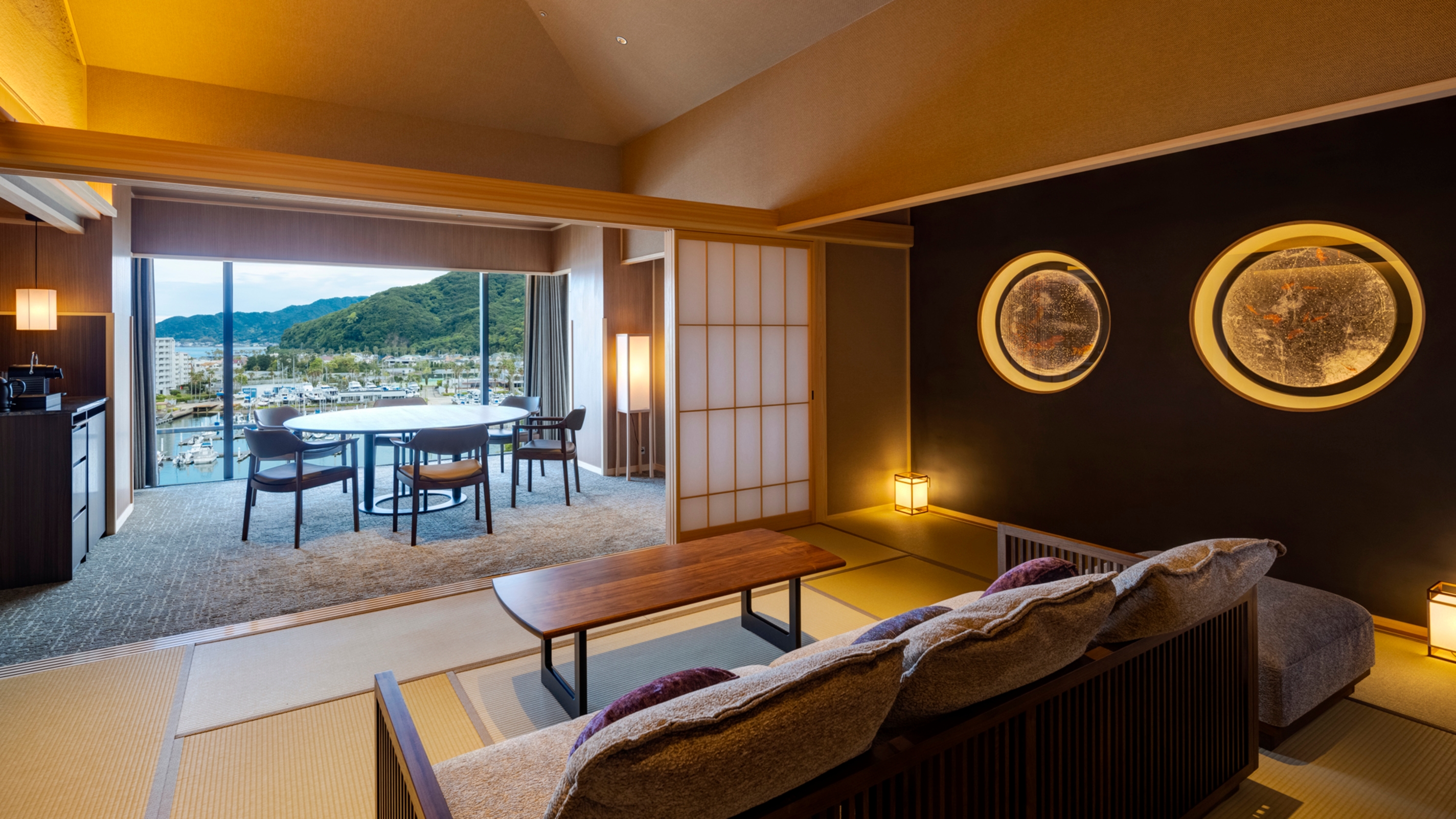 また、プライベート釣り場へもお部屋か直通出来るアクセスルートがあり、客室内には専用ダイニングを設え、お食事も優雅に過ごすことができ、ご家族との特別な時間、特別な滞在に大変おすすめな客室となっています。