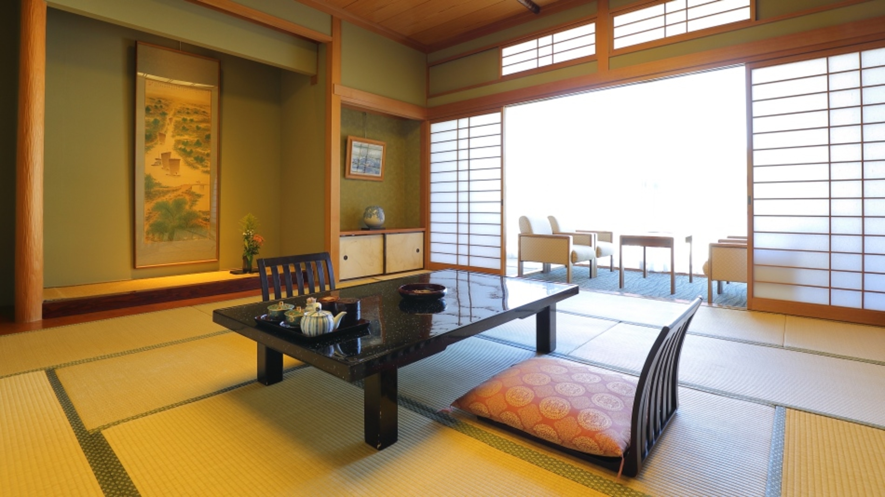 旅館の古き日本の住まいのイメージを大切に、全室和室に統一した「紀州・白浜温泉 むさし」