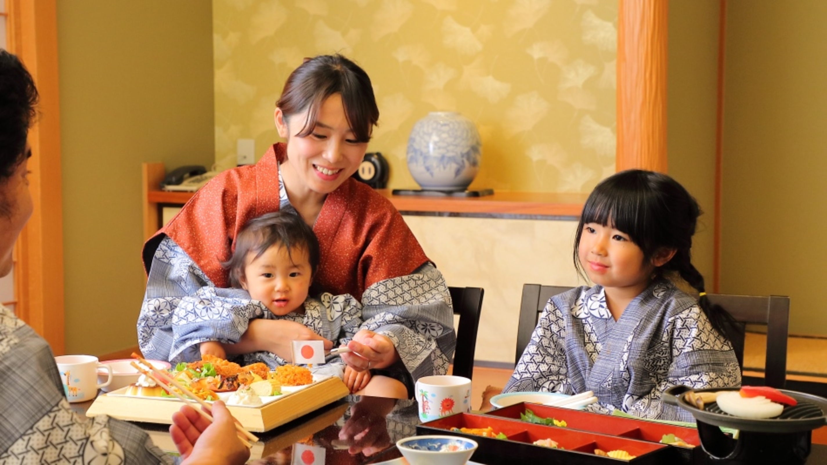 夕食はお部屋にてご家族だけでゆっくりとお召し上がりいただけます。