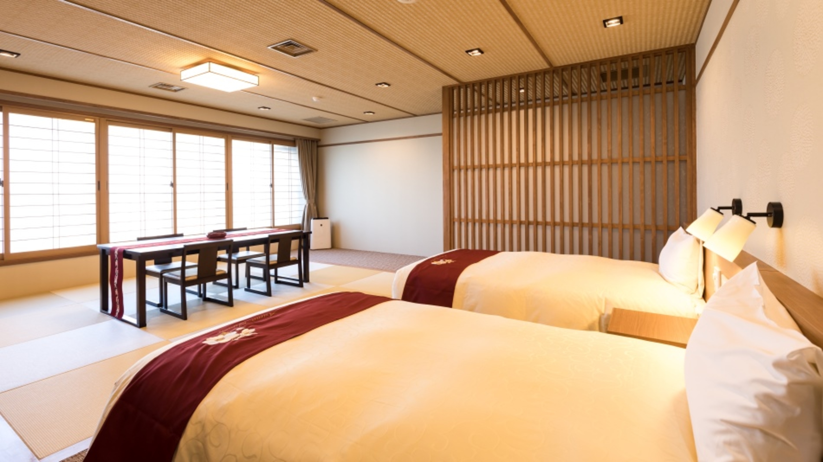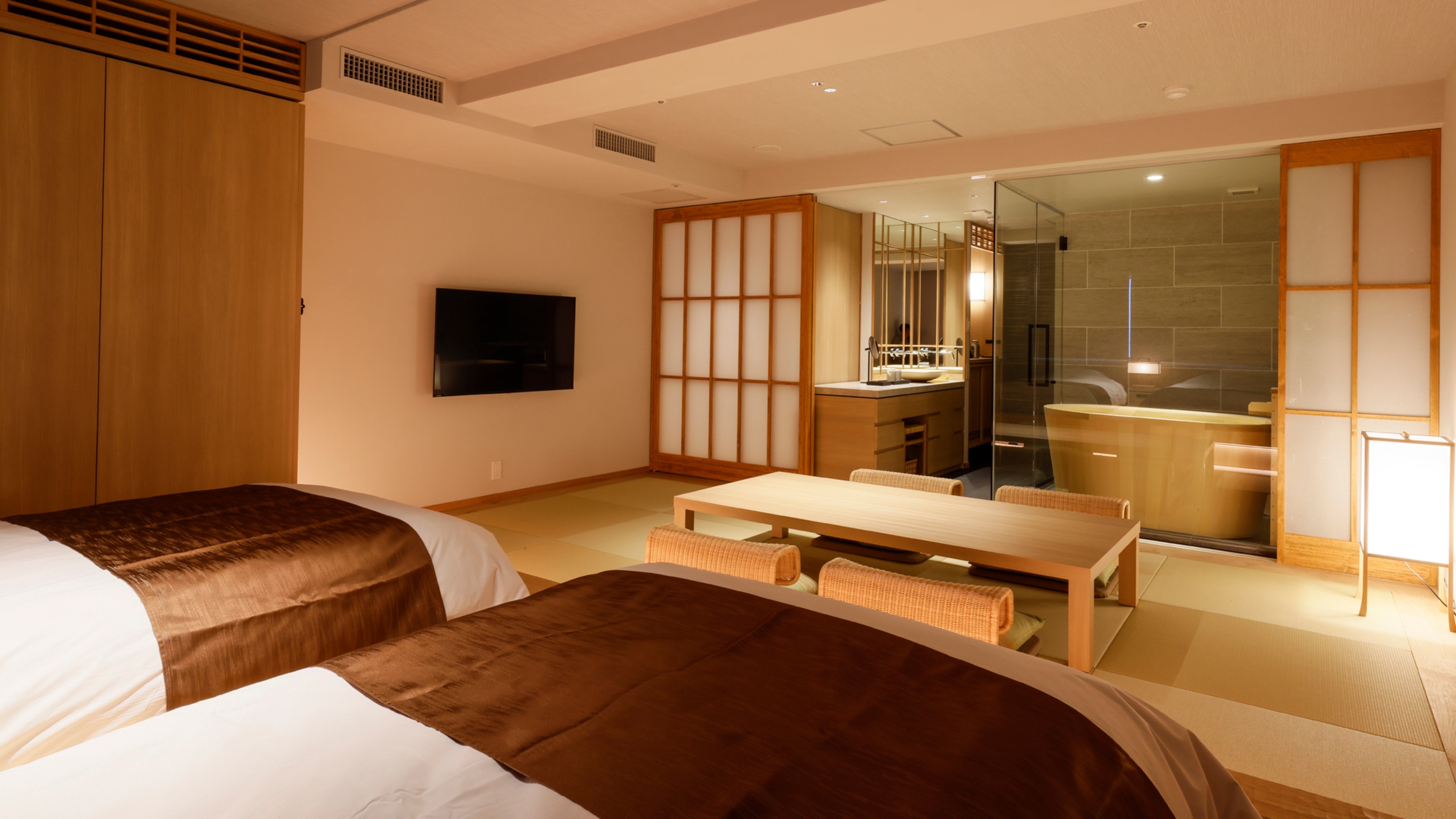 どの客室も木・土・紙といった和の良さを取り入れ、四季折々の情緒あふれる、自然と一体となるような空間となっています!